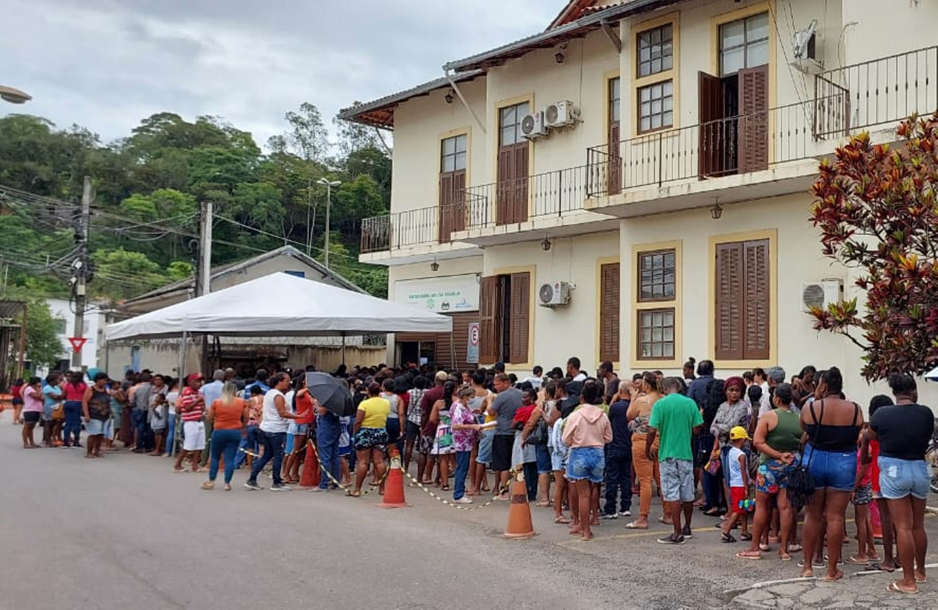 Em determinado momento, a fila chegou a dobrar a esquina da Prefeitura de Macuco em virtude do número de beneficiários