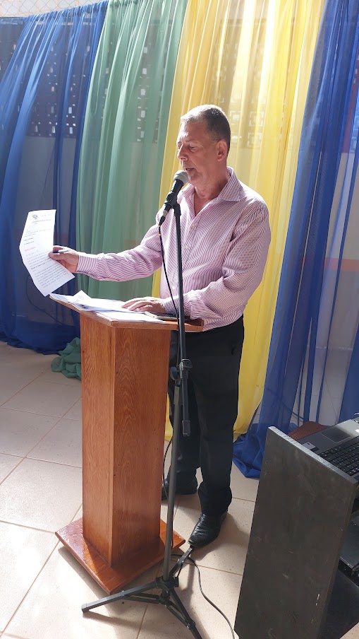 Autoridades municipais e palestrantes aguardando na Mesa Diretiva o início da conferência propriamente dita em Macuco