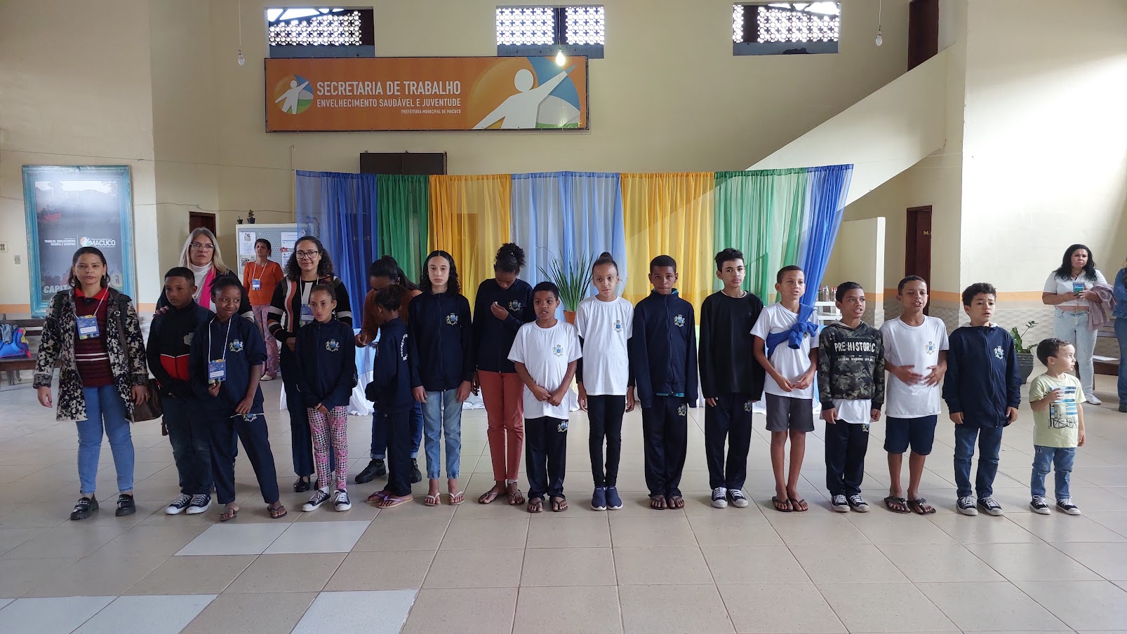 Momento de emoção do evento, os pequenos estudantes da Rede Municipal de Ensino de Macuco mostraram estar integrados ao processo social