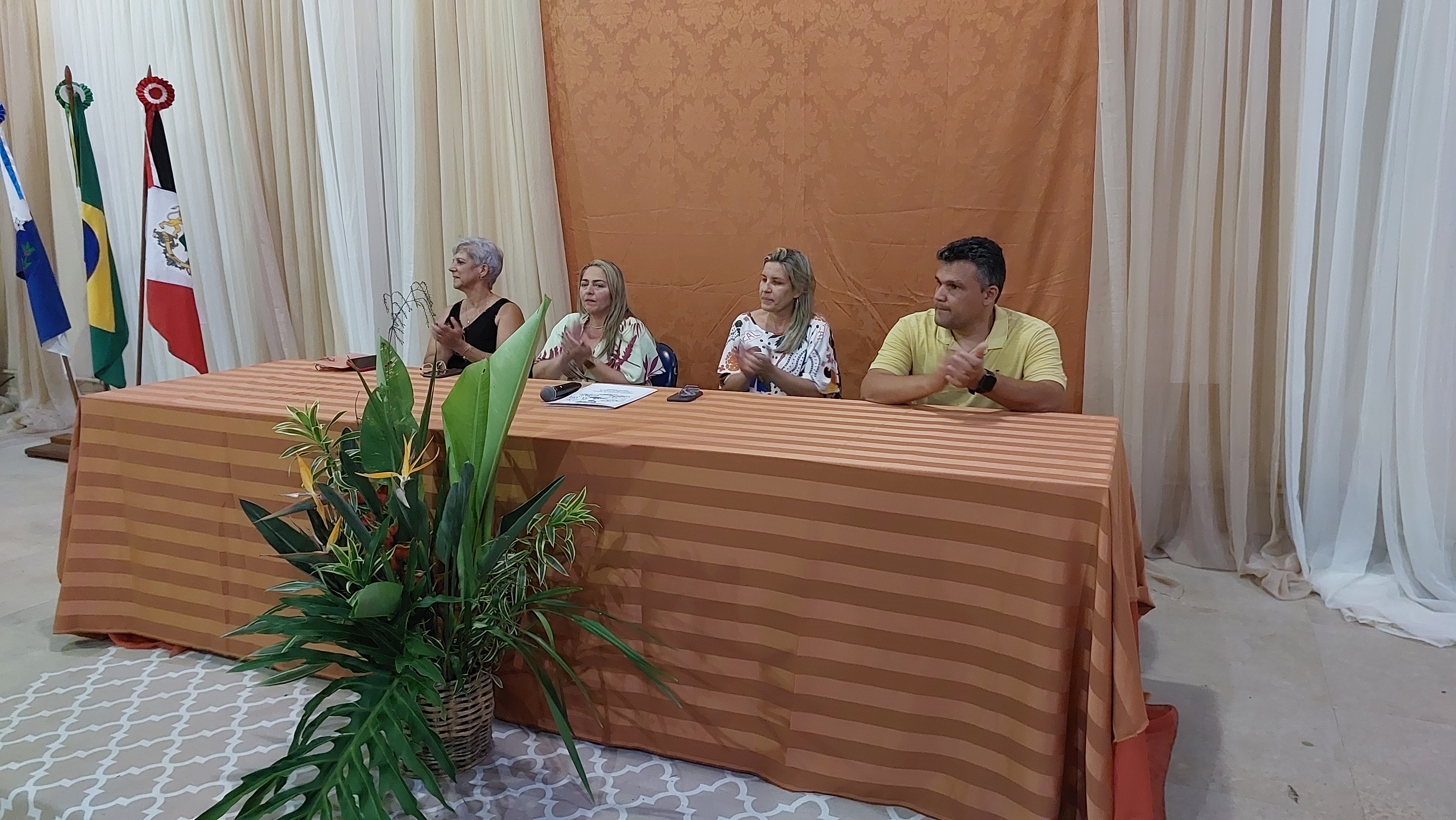Mesa Diretiva aplaudindo o início da solenidade e o anúncio da entrada dos conselheiros tutelares que tomariam posse
