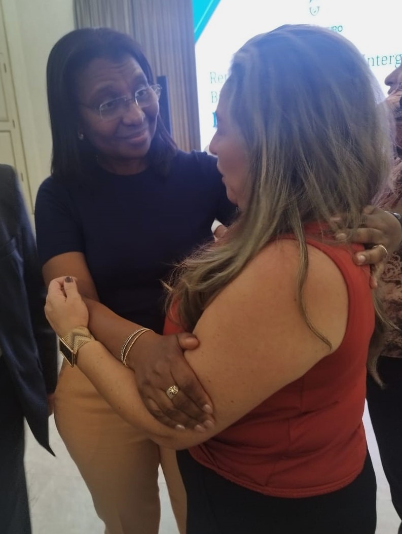 Durante a solenidade, o encontro entre as secretárias de Desenvolvimento Social do Governo do Estado e de Macuco, Rosângela Gomes e Tatiane Bormevet