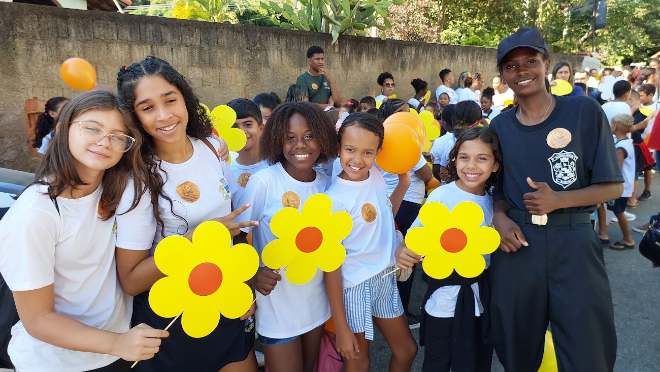 Crianças de todas as idades dos educandários do município e a comunidade se uniu para participar da passeata, percorrendo as principais ruas do centro