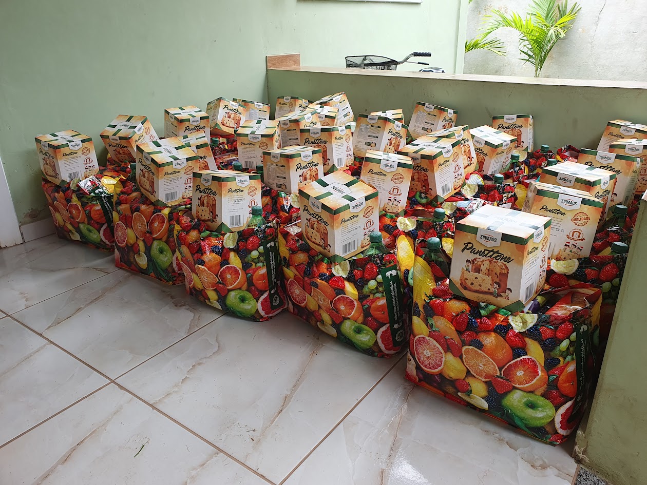 Cada cesta contendo 19 itens essenciais foi cuidadosamente preparada para atender às necessidades das famílias. Arroz, feijão, macarrão, óleo, leite condensado, açúcar, biscoito doce, creme de leite, ervilha e milho em conserva, farinha de mandioca, extrato de tomate, frango inteiro, maionese, óleo de soja, pêssego em calda, uvas passas, panetone com frutas e refrigerante fizeram parte da cesta, assegurando uma refeição completa e nutritiva. Duas equipes trabalharam incansavelmente para garantir a entrega eficiente e organizada dos gêneros alimentícios nas duas unidades do CRAS, demonstrando o compromisso da Gestão Municipal com o bem-estar da população.