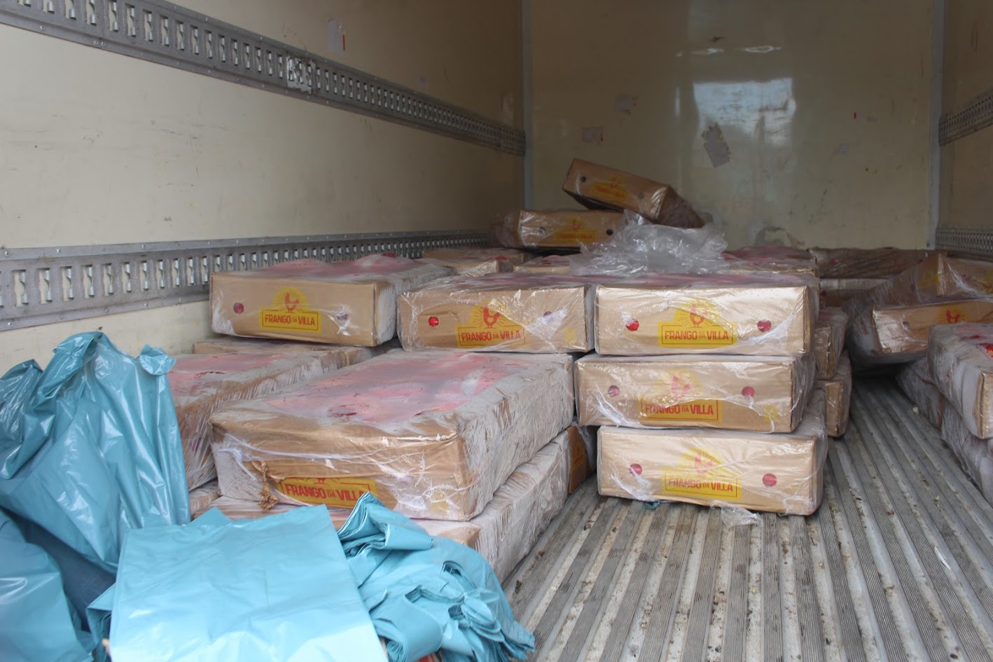 Não poderia faltar nas cestas o tradicional frango, que foi entregue congelado para garantir a qualidade na entrega do produto