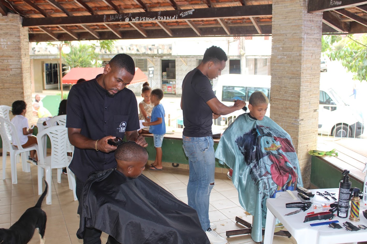Cabeleireiros talentosos que atuam no projeto fizeram o trabalho de corte de cabelo gratuitamente para os macuquenses