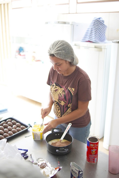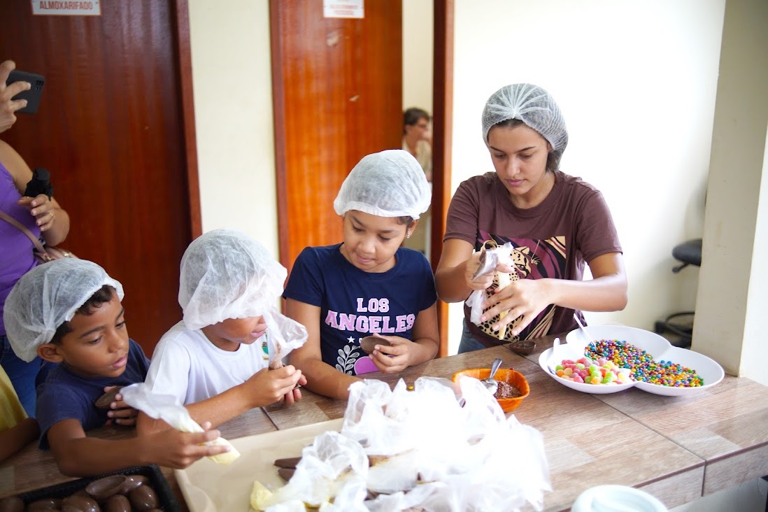 Todas as etapas da criação dos ovos de Páscoa foram acompanhadas atentamente pelos jovens cidadãos que frequentam o CRAS I no birro Santos Reis