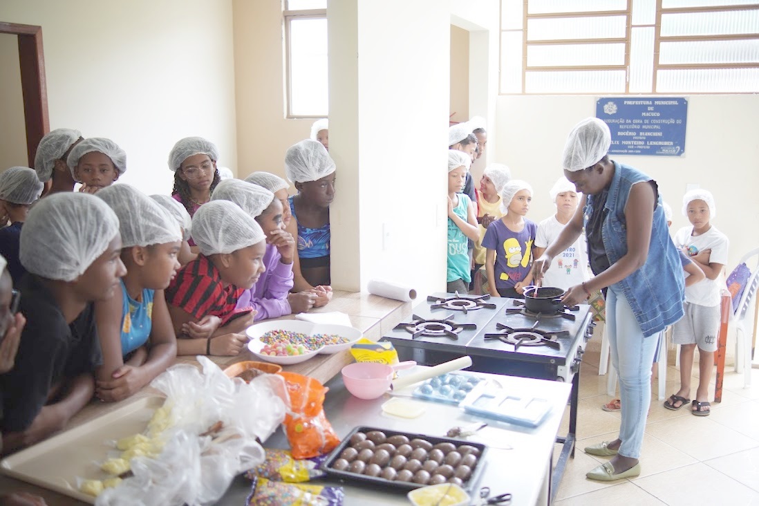 Com paciência e muito carinho, a jovem palestrante mostrou aos pequenos como se faz cada etapa da confecção das iguarias de chocolate