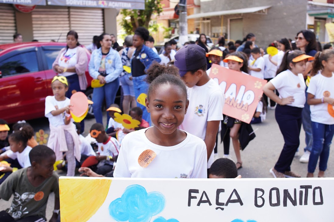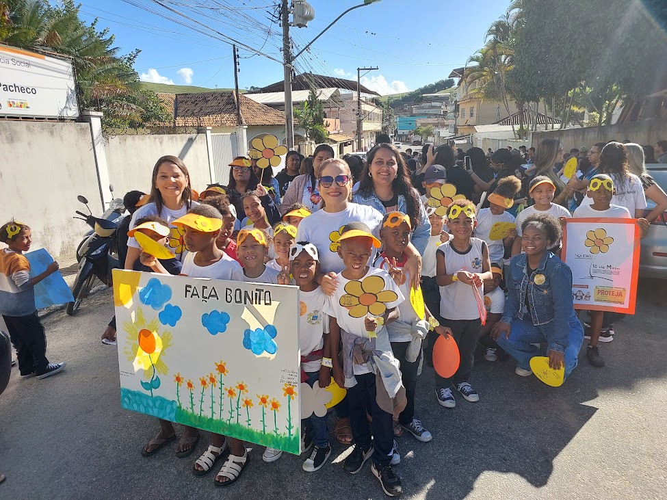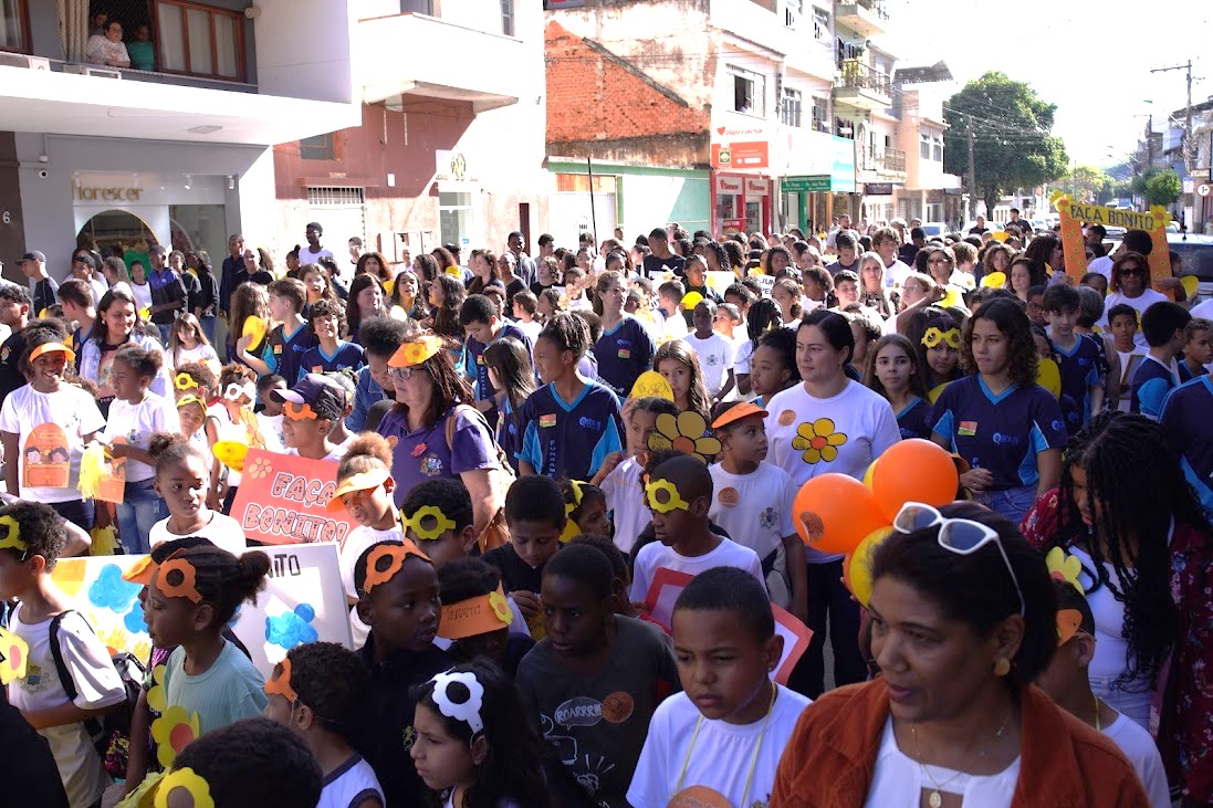 Numa organizada manifestação bem participativa, comunidades escolares, autoridades e munícipes se uniram para defender os direitos de crianças e adolescentes