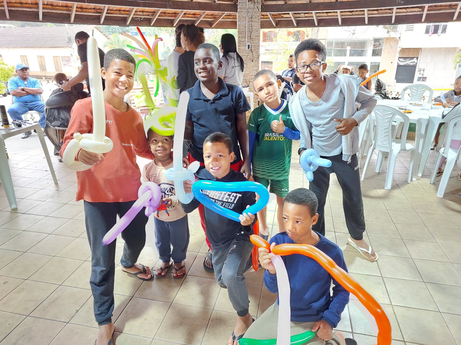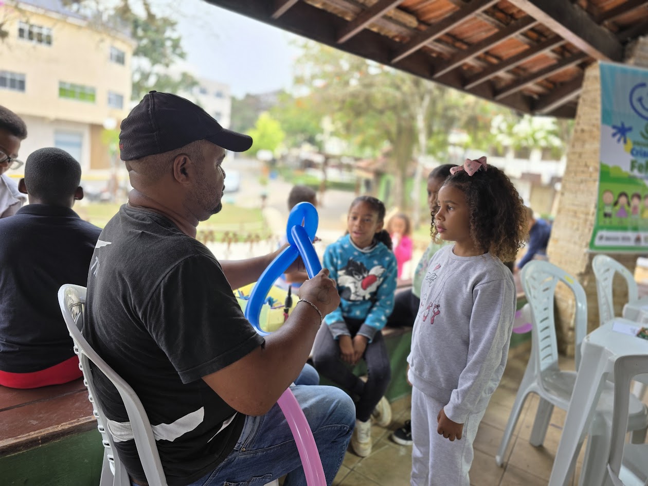 Os baixinhos também se encantaram brincando com os balões transformados em arte pelo artesão macuquense
