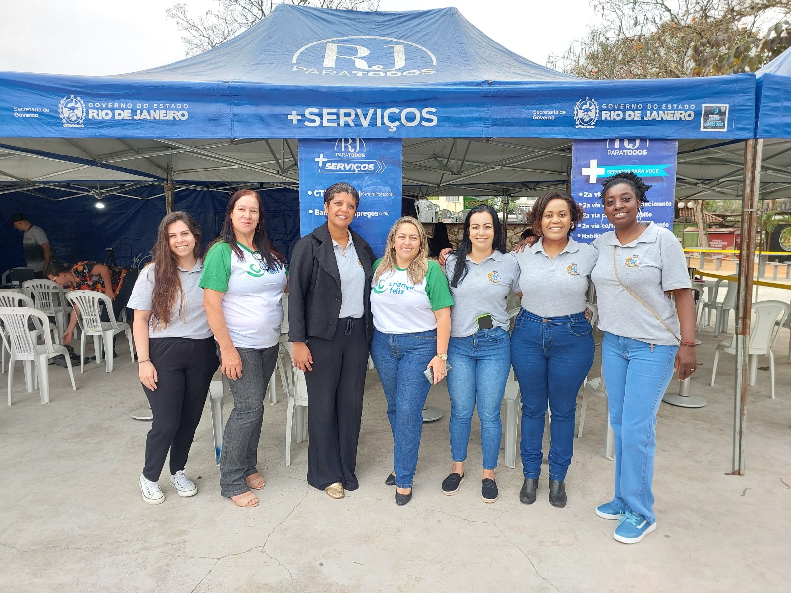 Secretária Tatiane Bormevet com a equipe do Governo do Estado que realizou a ação pelo ‘RJ Para Todos’