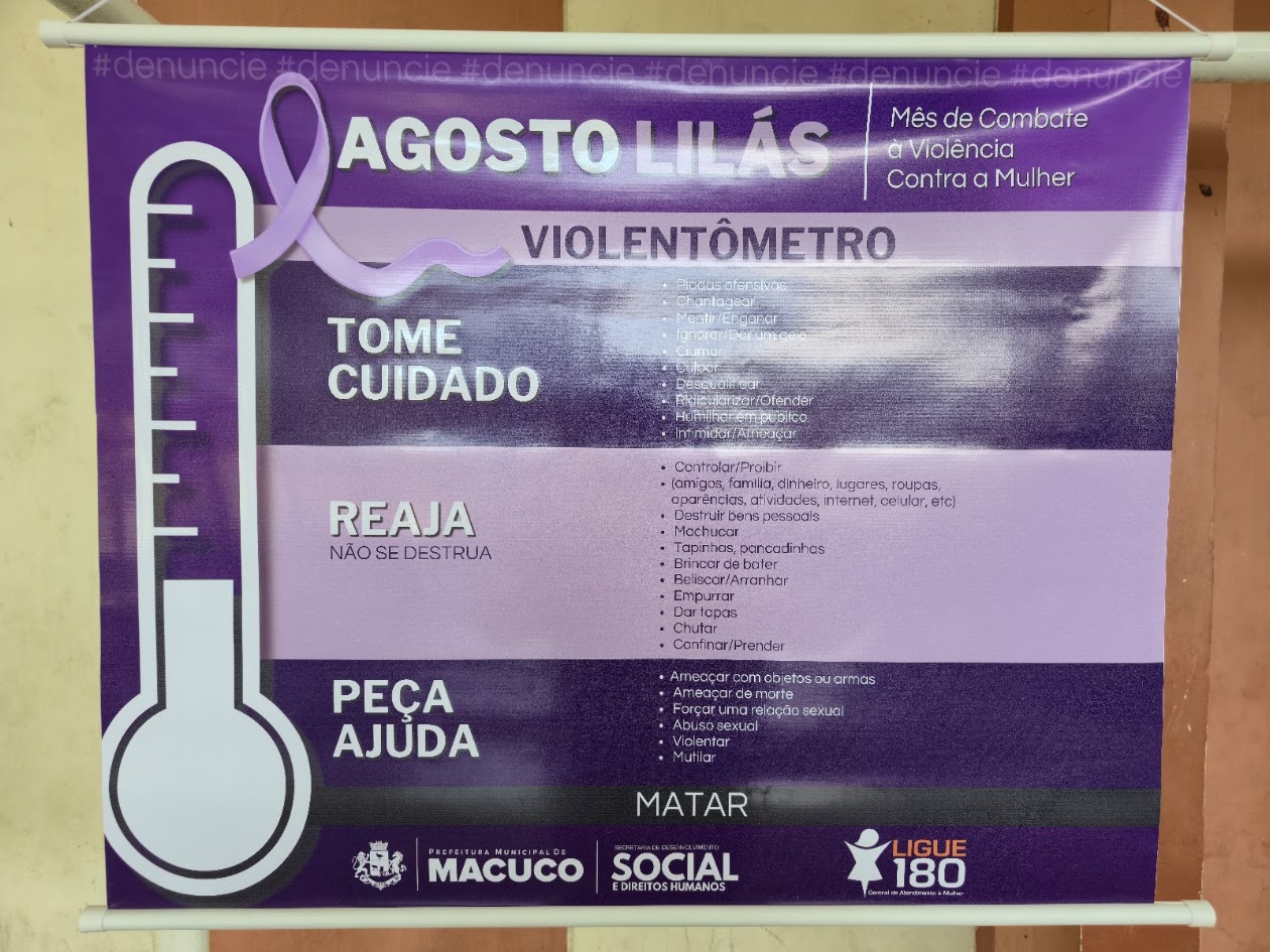 Mais uma vez, a parceria indissolúvel entre a Secretaria de Desenvolvimento Social e Direitos Humanos de Macuco e as equipes do CRAS e CREAS se mostrou eficaz. Nesta quinta-feira, dia 14 de agosto, representantes dessas instituições estiveram no Colégio Estadual Farmacêutico Rodolfo Albino para uma palestra interativa, parte das ações do ‘Agosto Lilás’. O objetivo foi debater a Lei Maria da Penha, abordando a importância da prevenção e do combate à violência doméstica e familiar contra a mulher.
