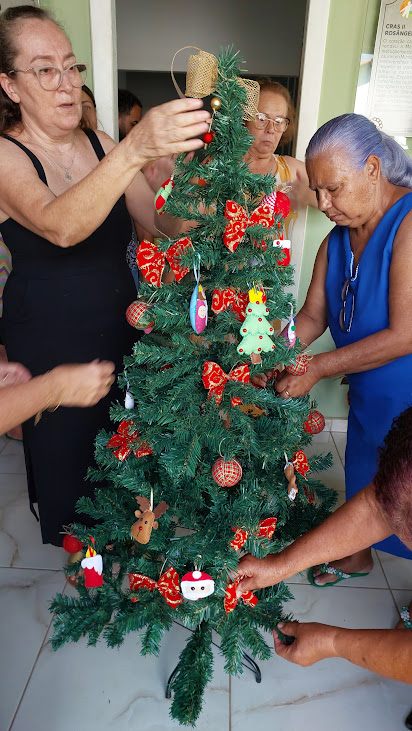 Juntas, as usuárias presentes ao encontro colocaram a mão na massa e ajudaram a montar a sempre bem-vinda e iluminada árvore de Natal