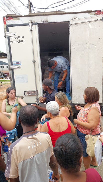 Também foi muito rápida a distribuição dos frangos que integravam a lista de produtos incluídos nas cestas oferecidas aos beneficiários