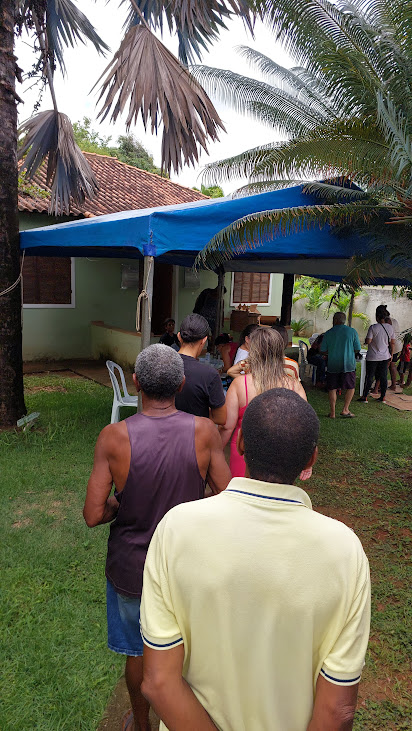Uma pequena tenda foi montada no interior do CRAS do Paraíso para dar mais conforto e comodidade aos usuários e tranquilidade aos servidores envolvidos na entrega