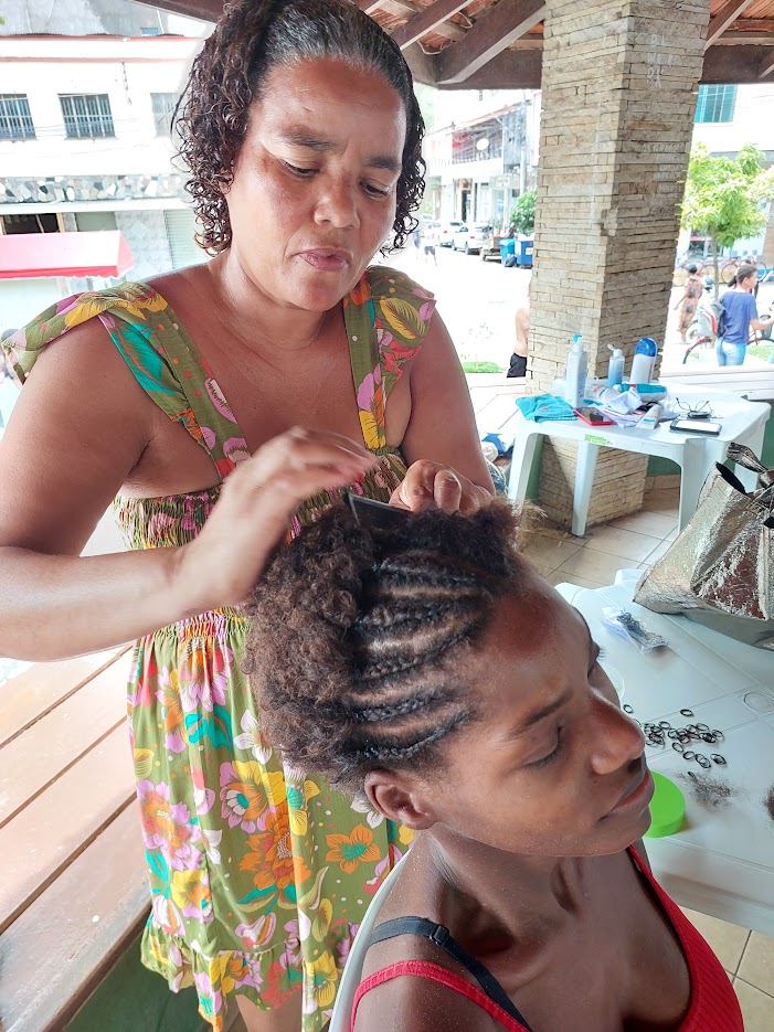 Sempre destaque nas ações da Secretaria de Desenvolvimento Social, as trancistas mostram sua versatilidade e deixam feitas as cabeças da comunidade local