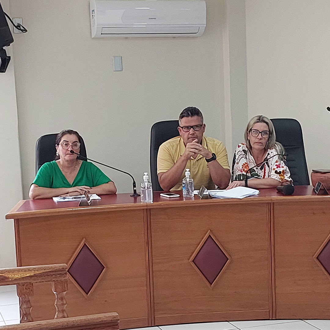 Secretárias Sandra Laurindo (Fazenda) e Débora Torres (Controle Interno) durante a explanação dos relatórios pelo contador Rodrigo Vila Nova