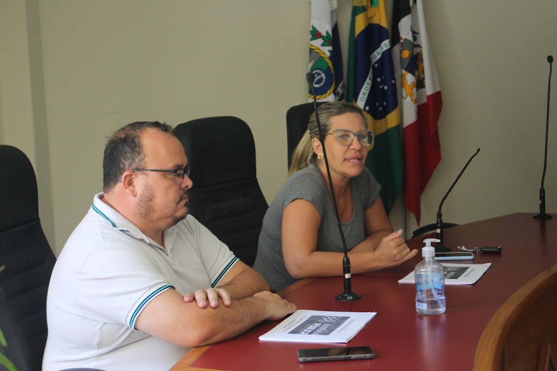 Junto com seu vice-prefeito João Batista Oliveira, a prefeita Michelle Bianchini acompanhou a Audiência Pública e teceu elogios às suas equipes