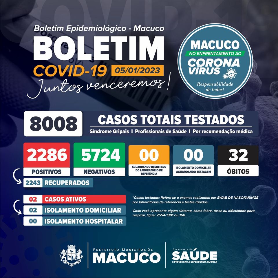 Boletim atualizado sobre o COVID-19 em Macuco - 05/01/2023
