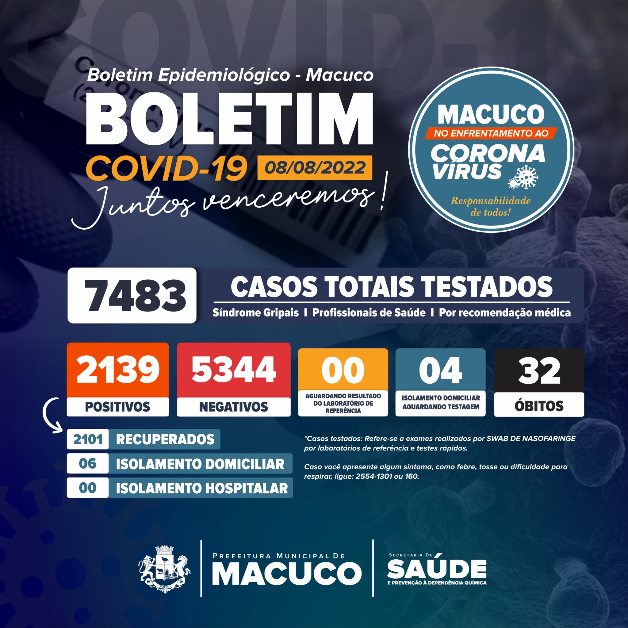 Boletim atualizado sobre o COVID-19 em Macuco - 08/08/2022