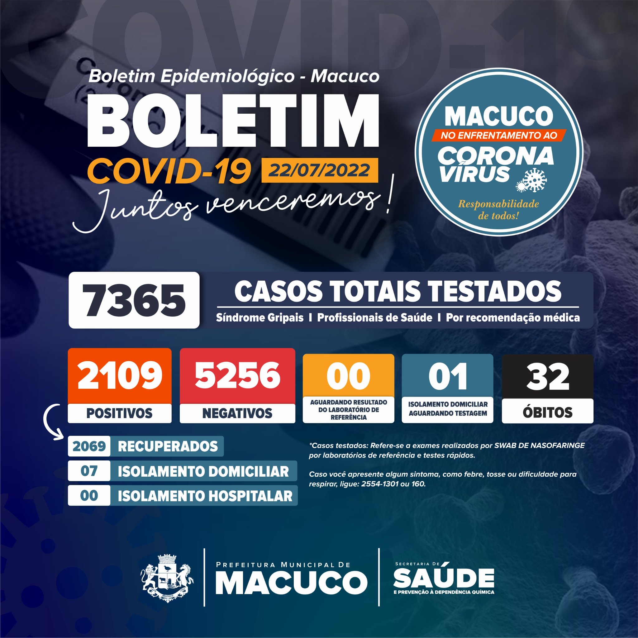 Boletim atualizado sobre o COVID-19 em Macuco - 22/07/2022