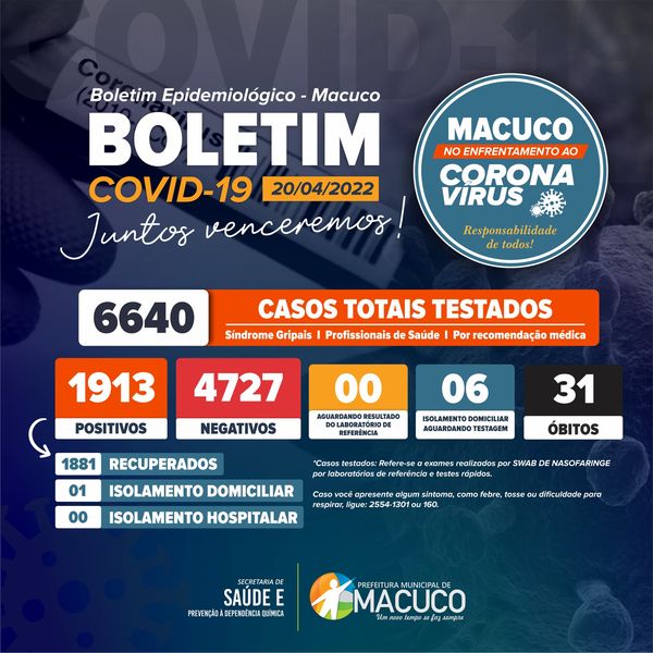 Boletim atualizado sobre o COVID-19 em Macuco - 20/04/2022