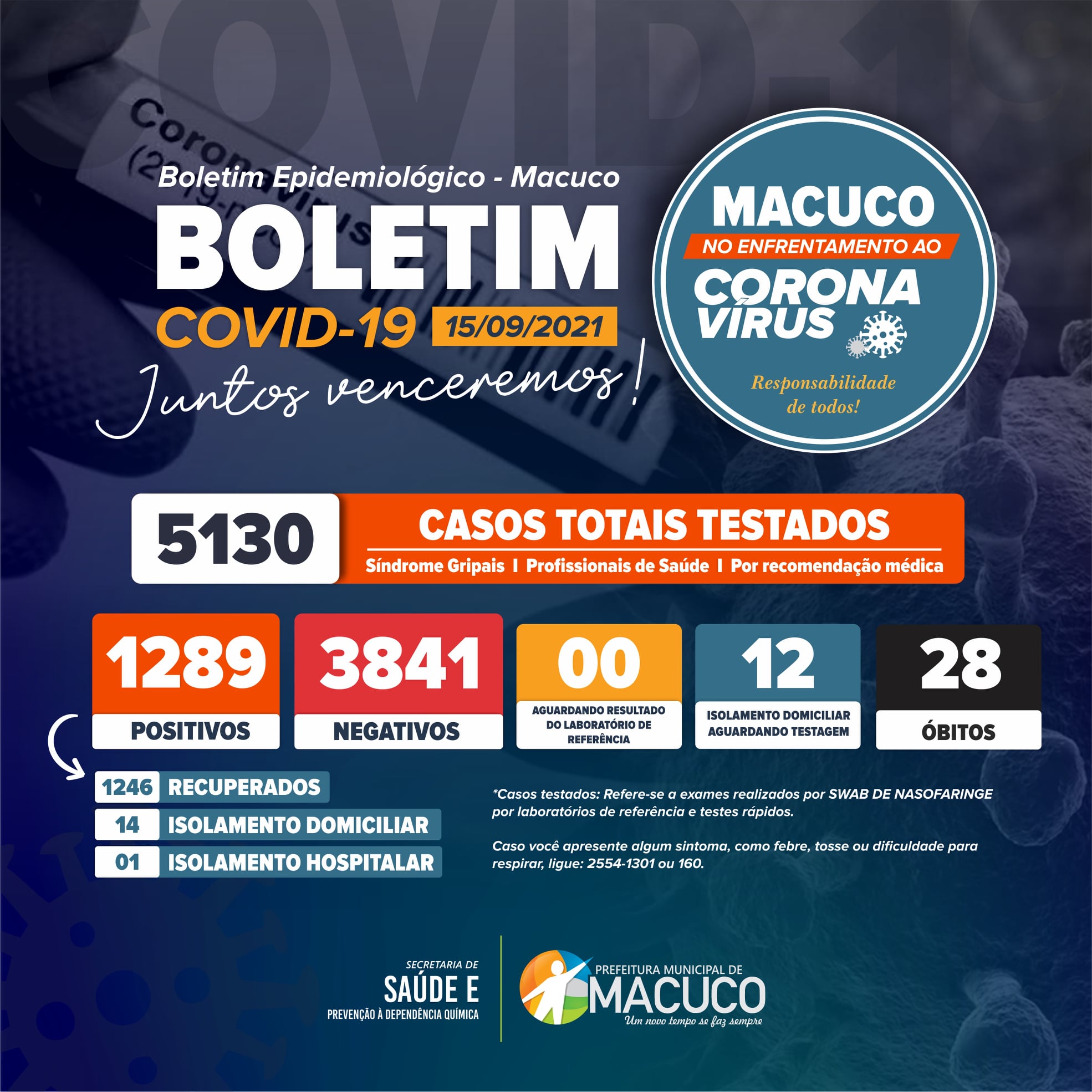 Boletim atualizado sobre o COVID-19 em Macuco - 15/09/2021