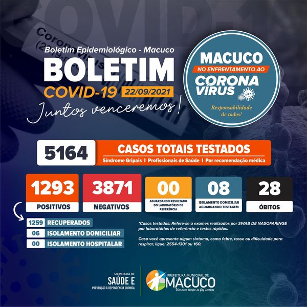 Boletim atualizado sobre o COVID-19 em Macuco - 22/09/2021