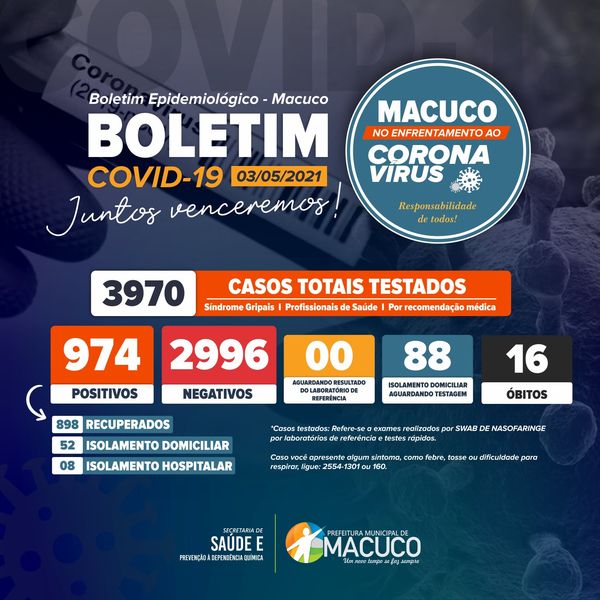 Boletim atualizado sobre o COVID-19 em Macuco - 03/05/2021