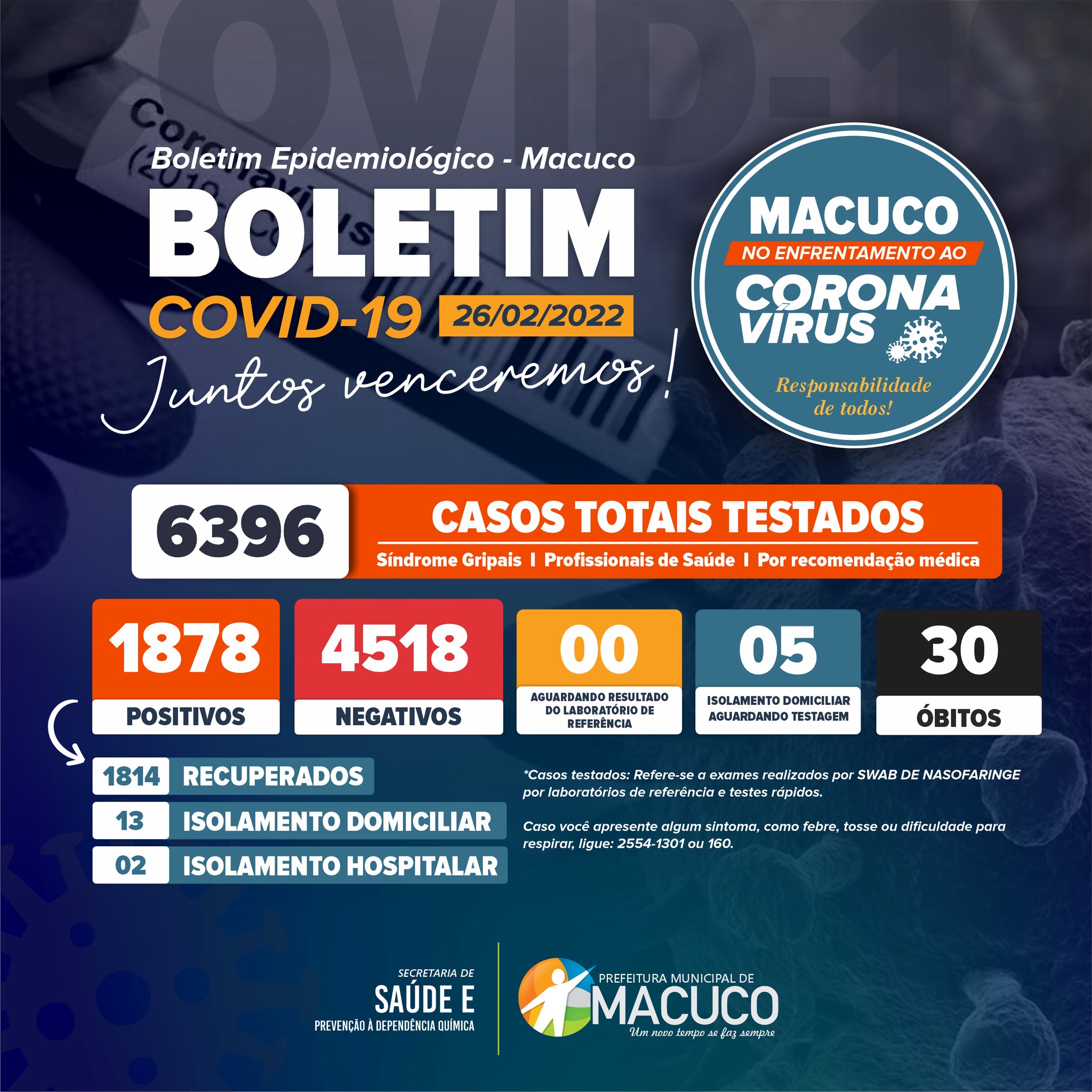 Boletim atualizado sobre o COVID-19 em Macuco - 26/02/2022