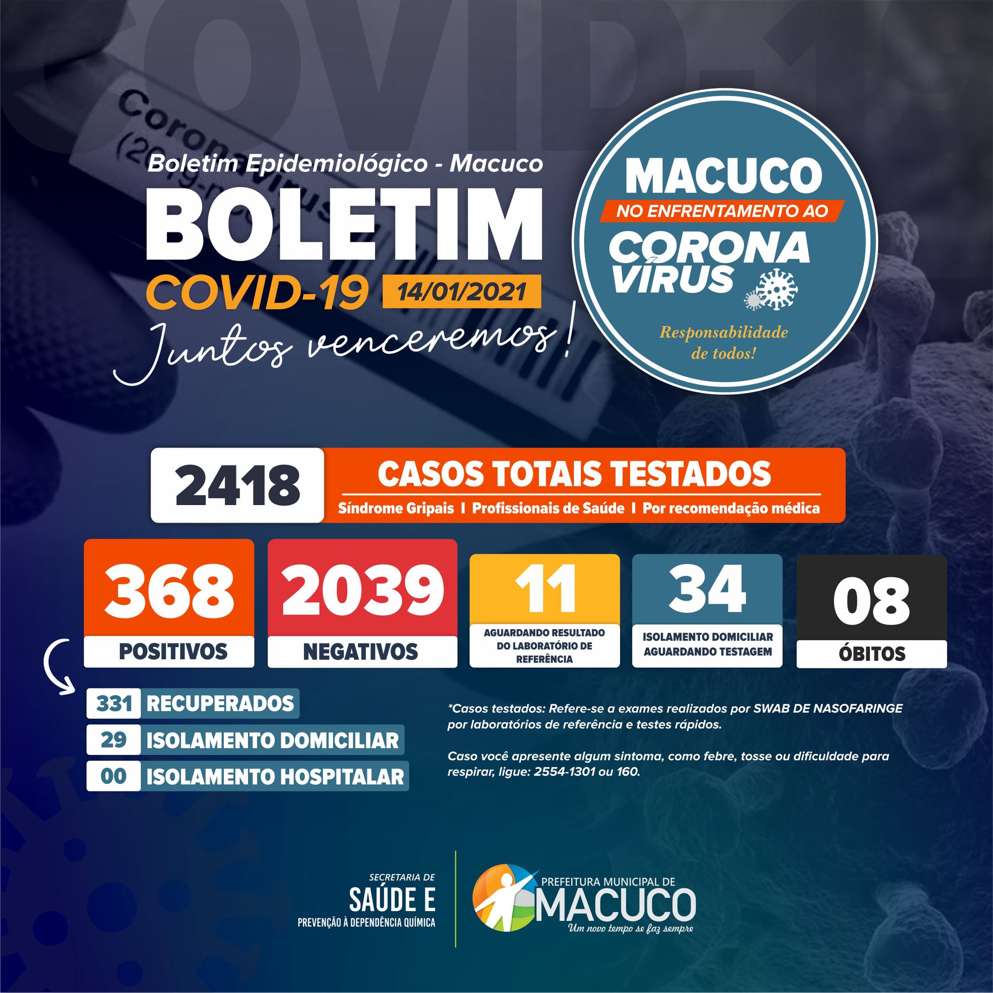 Boletim atualizado sobre o COVID-19 em Macuco - 14/01