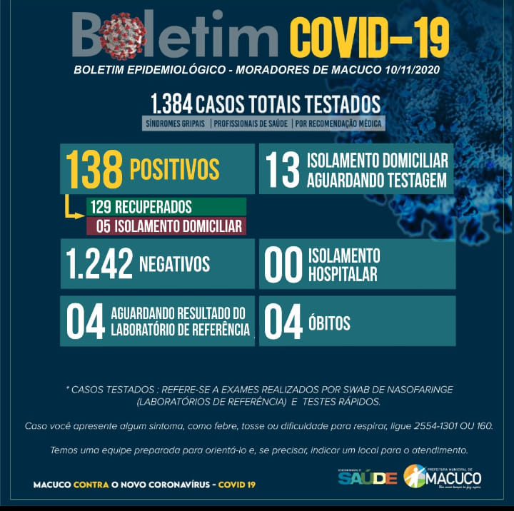 Boletim atualizado sobre o COVID-19 em Macuco - 10/11