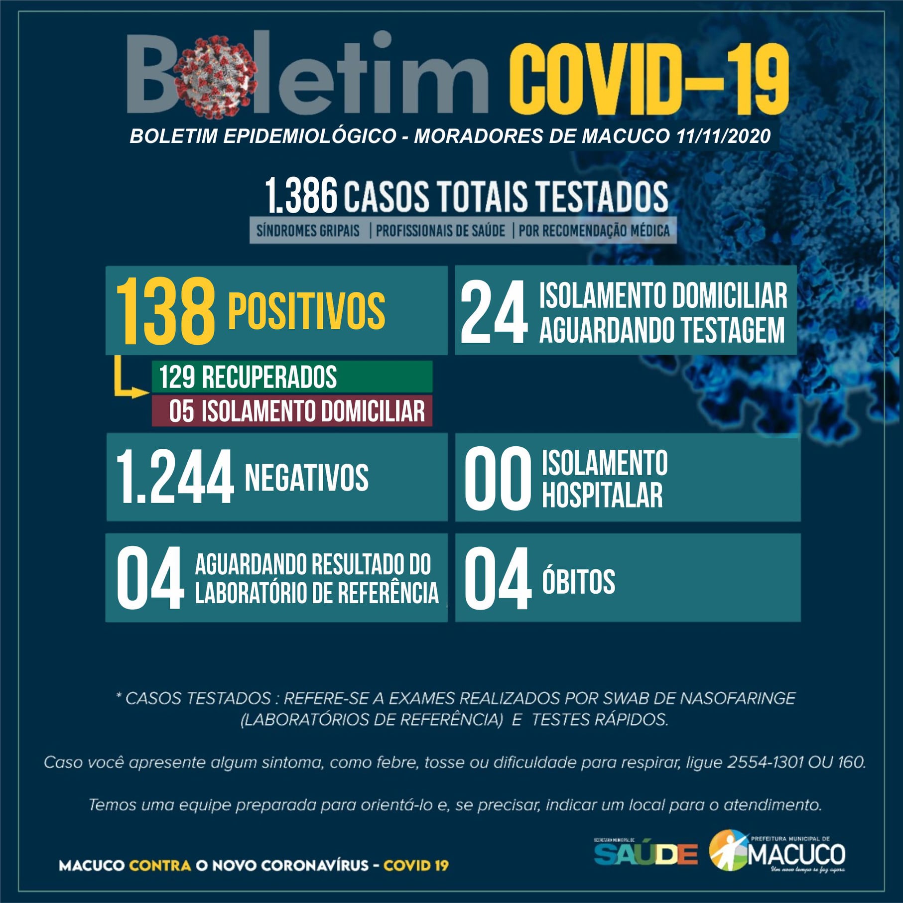 Boletim atualizado sobre o COVID-19 em Macuco - 11/11