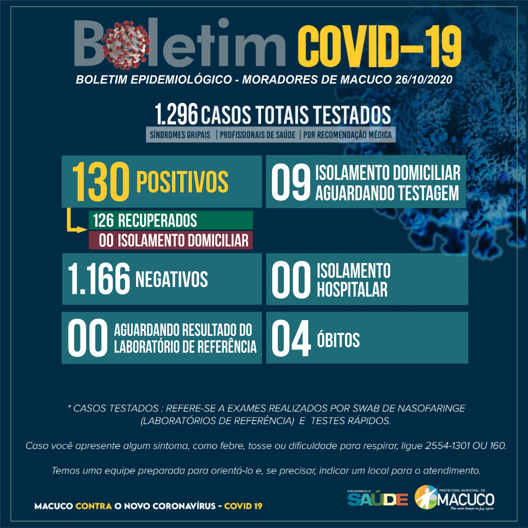Boletim atualizado sobre o COVID-19 em Macuco - 26/10