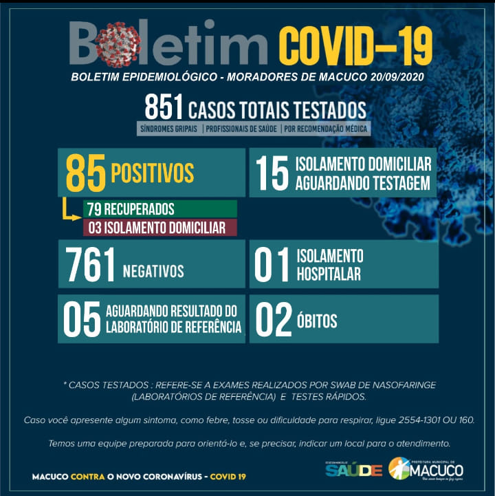 Boletim atualizado sobre o COVID-19 em Macuco - 20/09