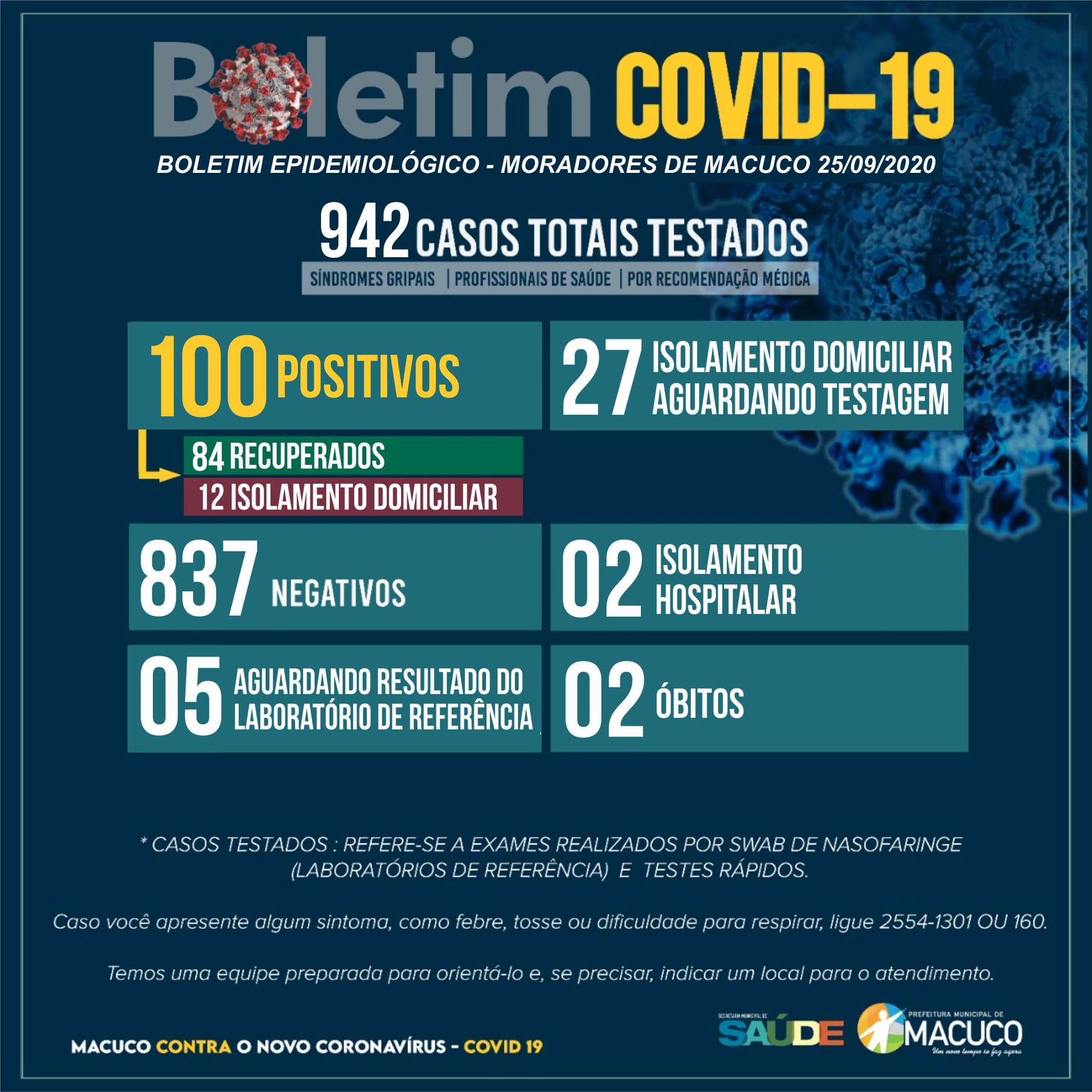 Boletim atualizado sobre o COVID-19 em Macuco - 25/09