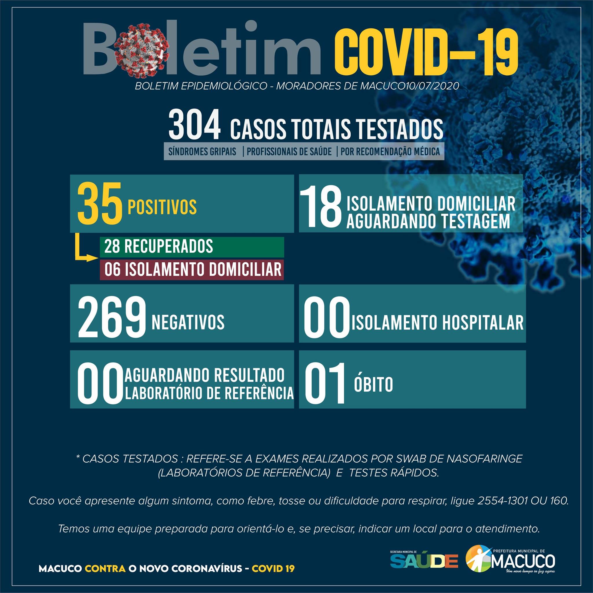 Boletim atualizado sobre o COVID-19 em Macuco - 10/07