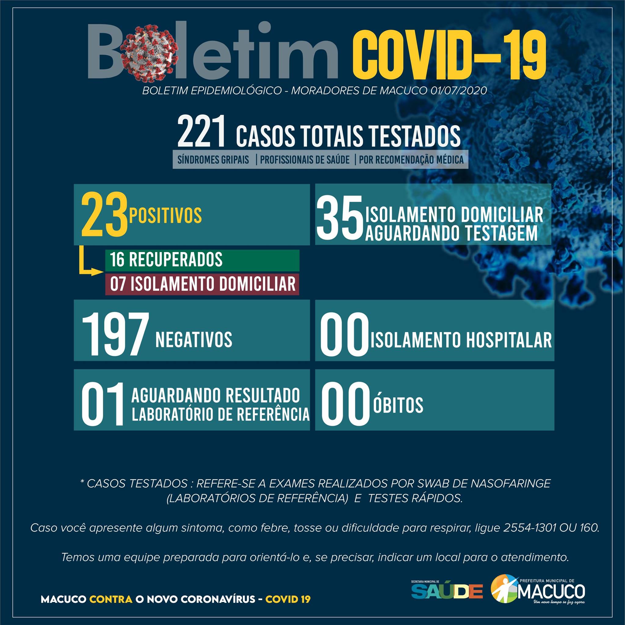 Boletim atualizado sobre o COVID-19 em Macuco - 01/07