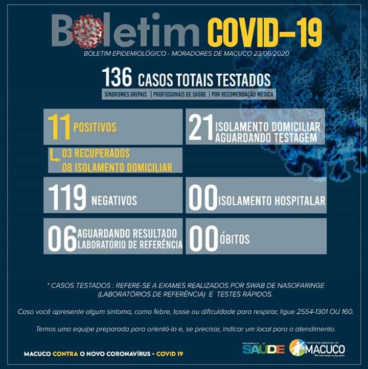 Boletim atualizado sobre o COVID-19 em Macuco - 23/06