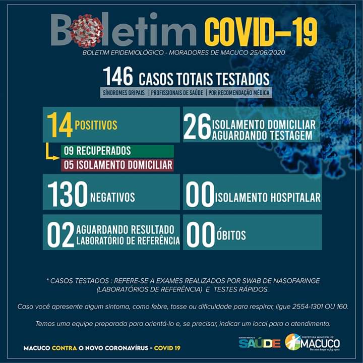 Boletim atualizado sobre o COVID-19 em Macuco - 25/06
