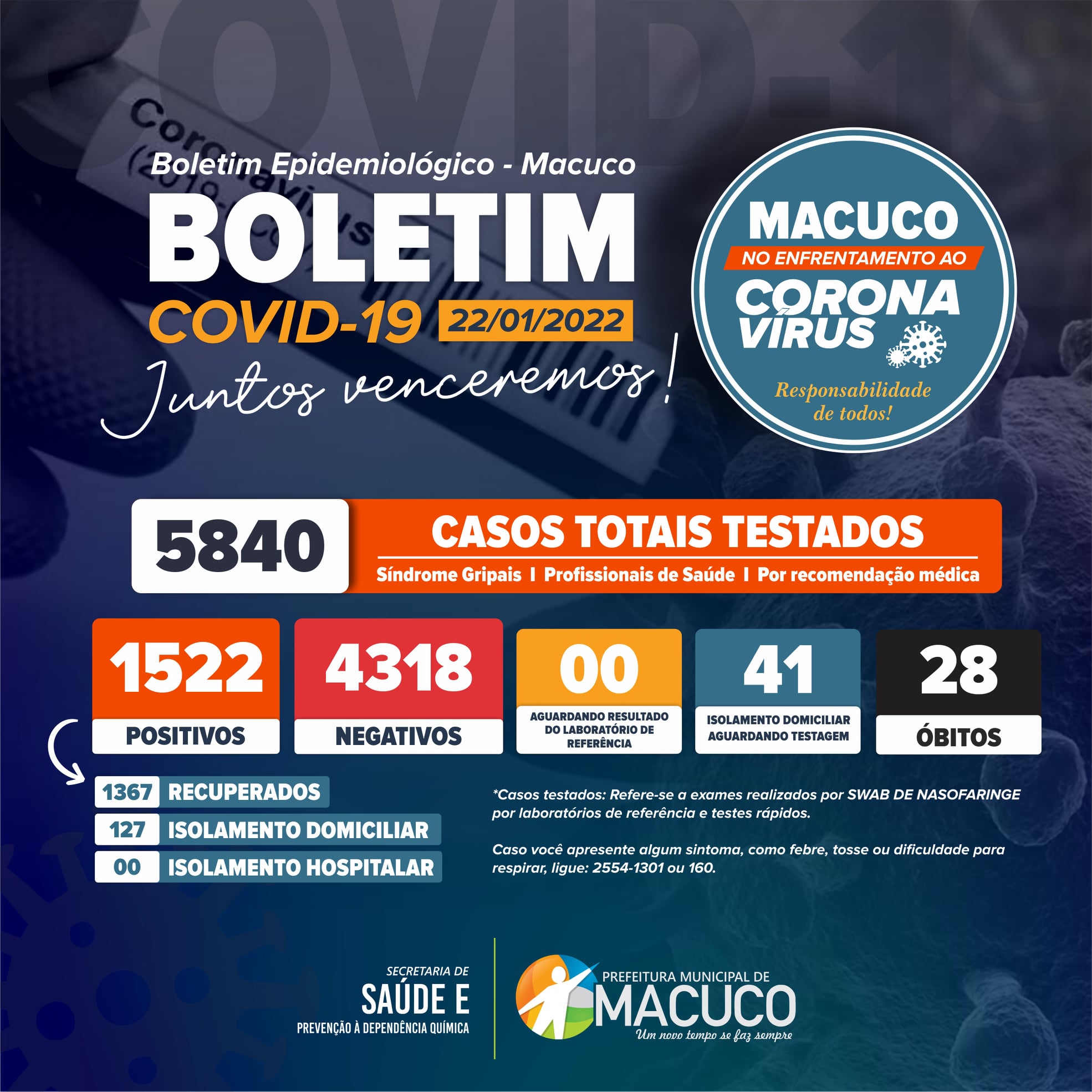 Boletim atualizado sobre o COVID-19 em Macuco - 22/01/2022