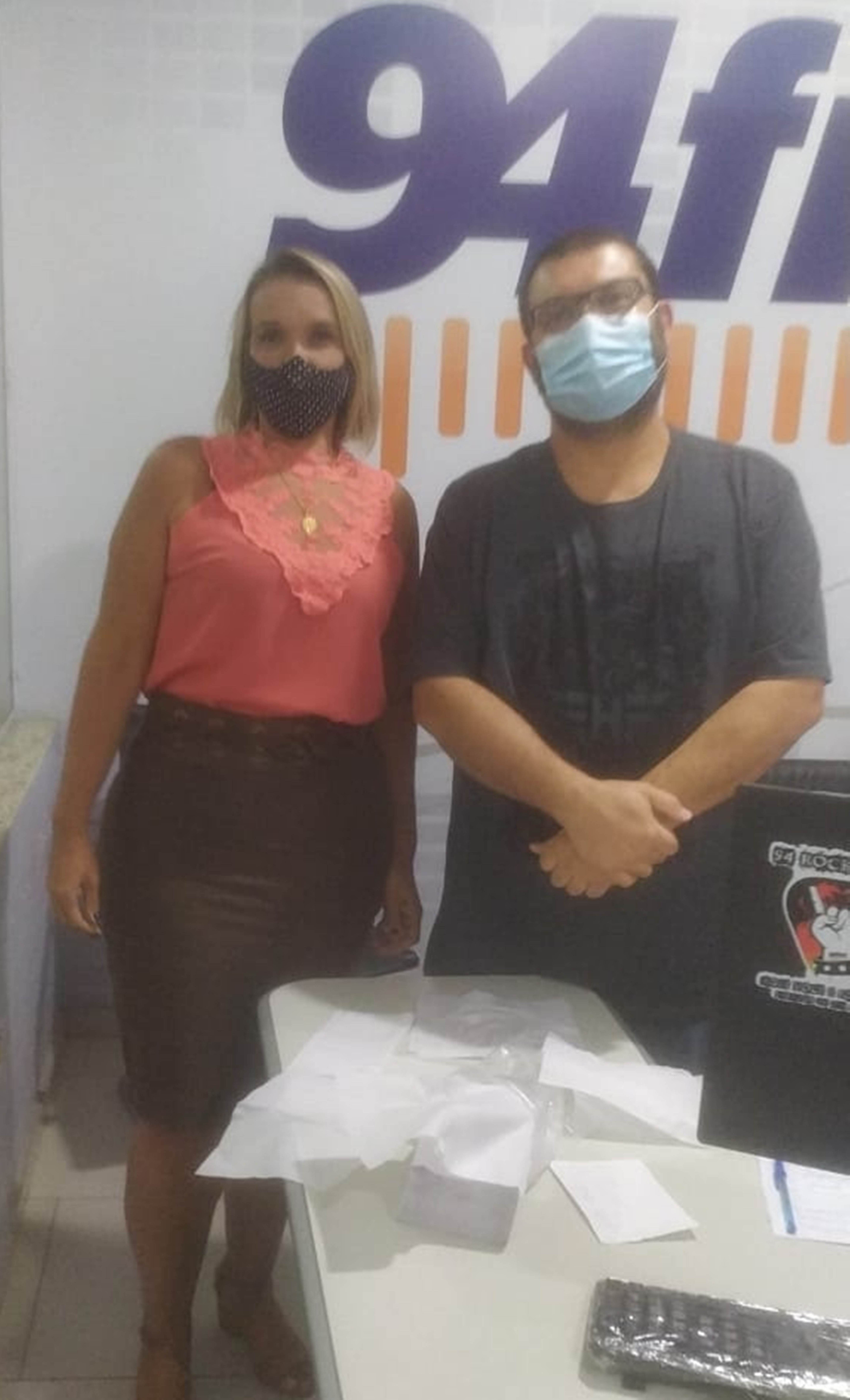 A secretária de Educação de Macuco ao lado do comunicador André Duarte
