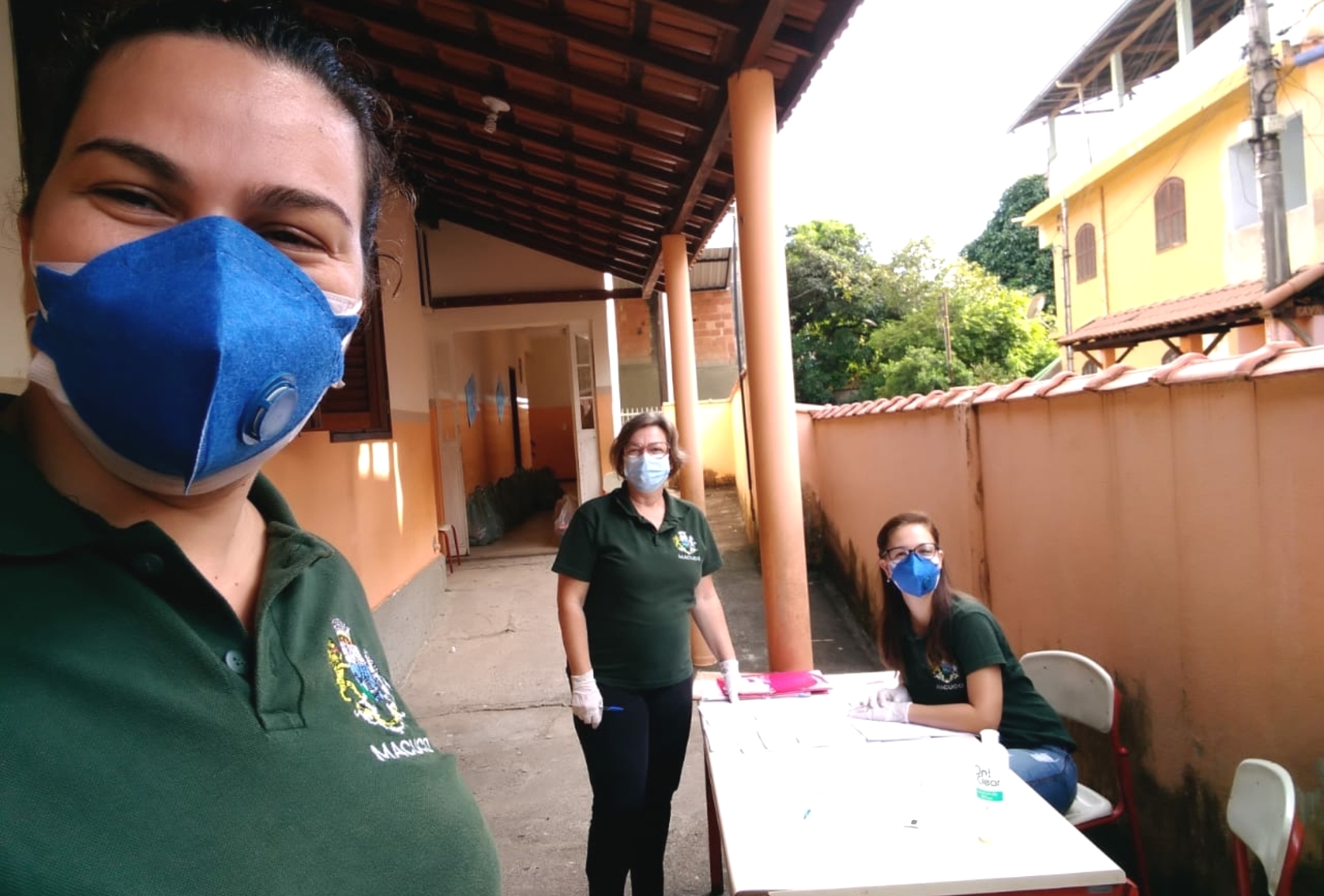 Nem a máscara esconde o sorriso dos profissionais de educação na entrega