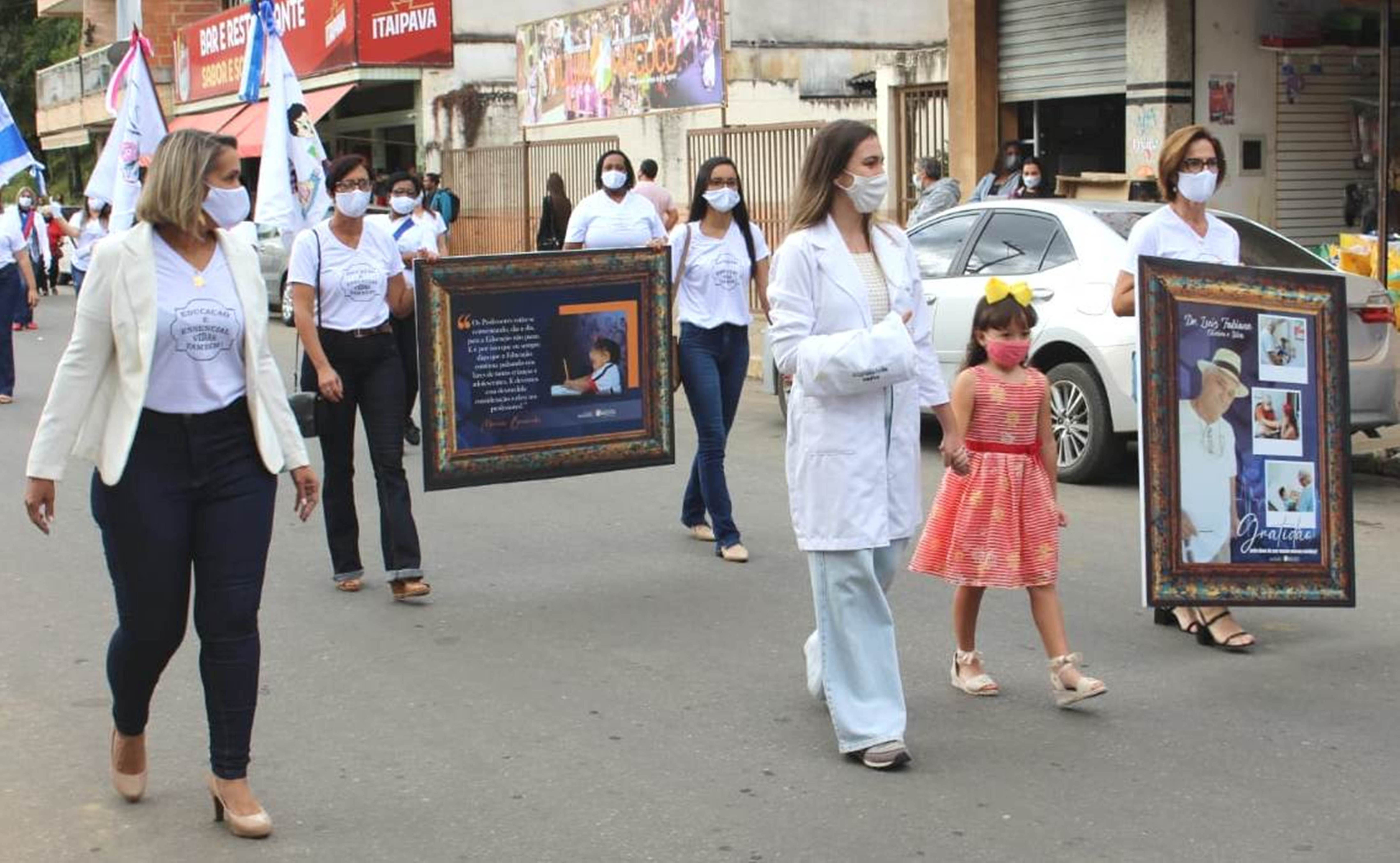 Ainda que de forma bem compacta e reservada — respeitando todos os protocolos de saúde em razão da pandemia — o desfile emocionou quem pôde acompanhá-lo, já que a Secretaria de Educação preparou homenagens alusivas ao momento vivido pela humanidade, evidenciando o trabalho abnegado, dedicado, corajoso e indispensável de profissionais de saúde e educação, que foram merecidamente o centro das atenções, bem como os balões brancos simbolizando as dolorosas perdas de 24 vidas no município.