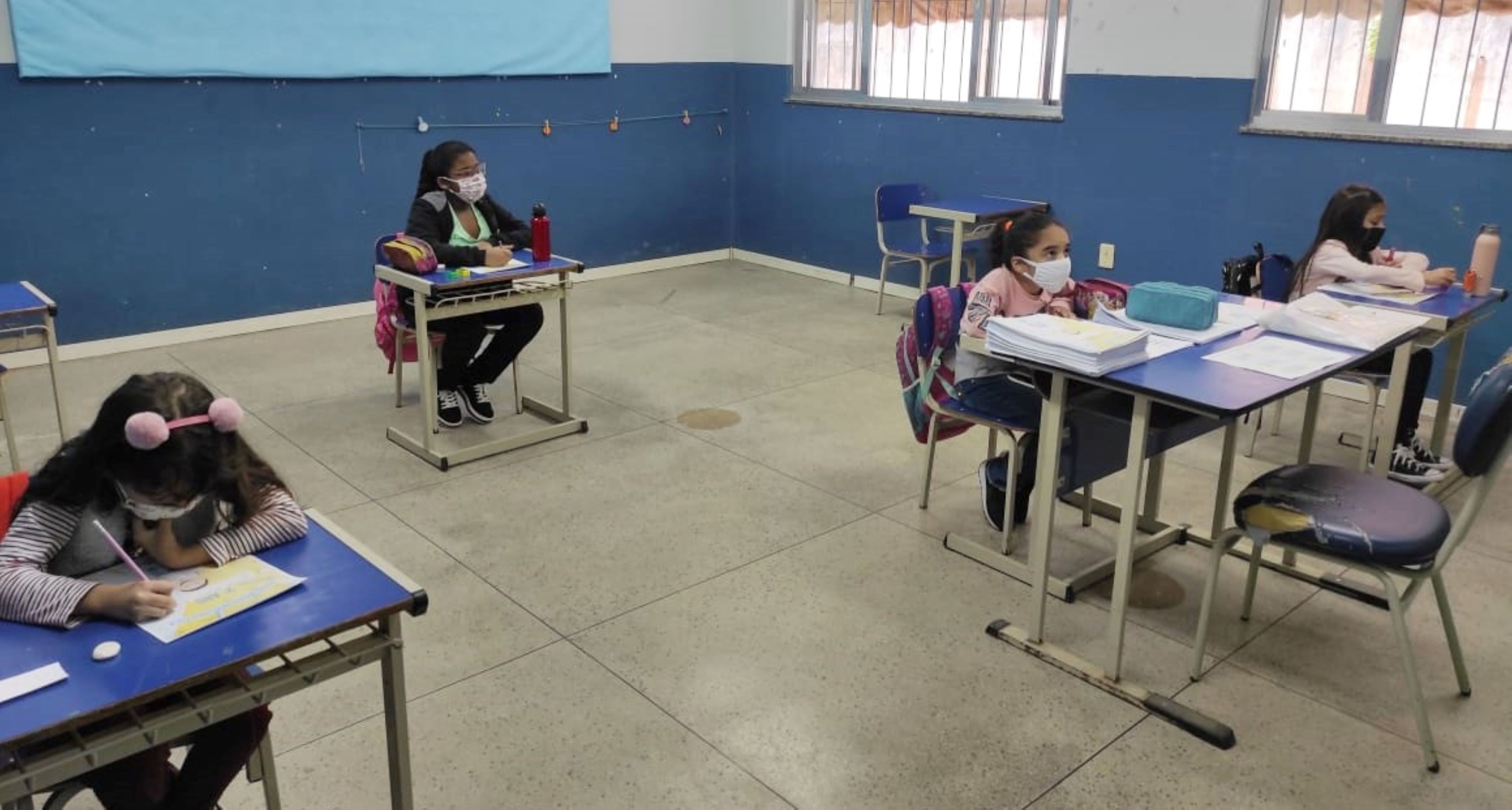 Turmas reduzidas e distanciamento entre as carteiras seguindo determinações