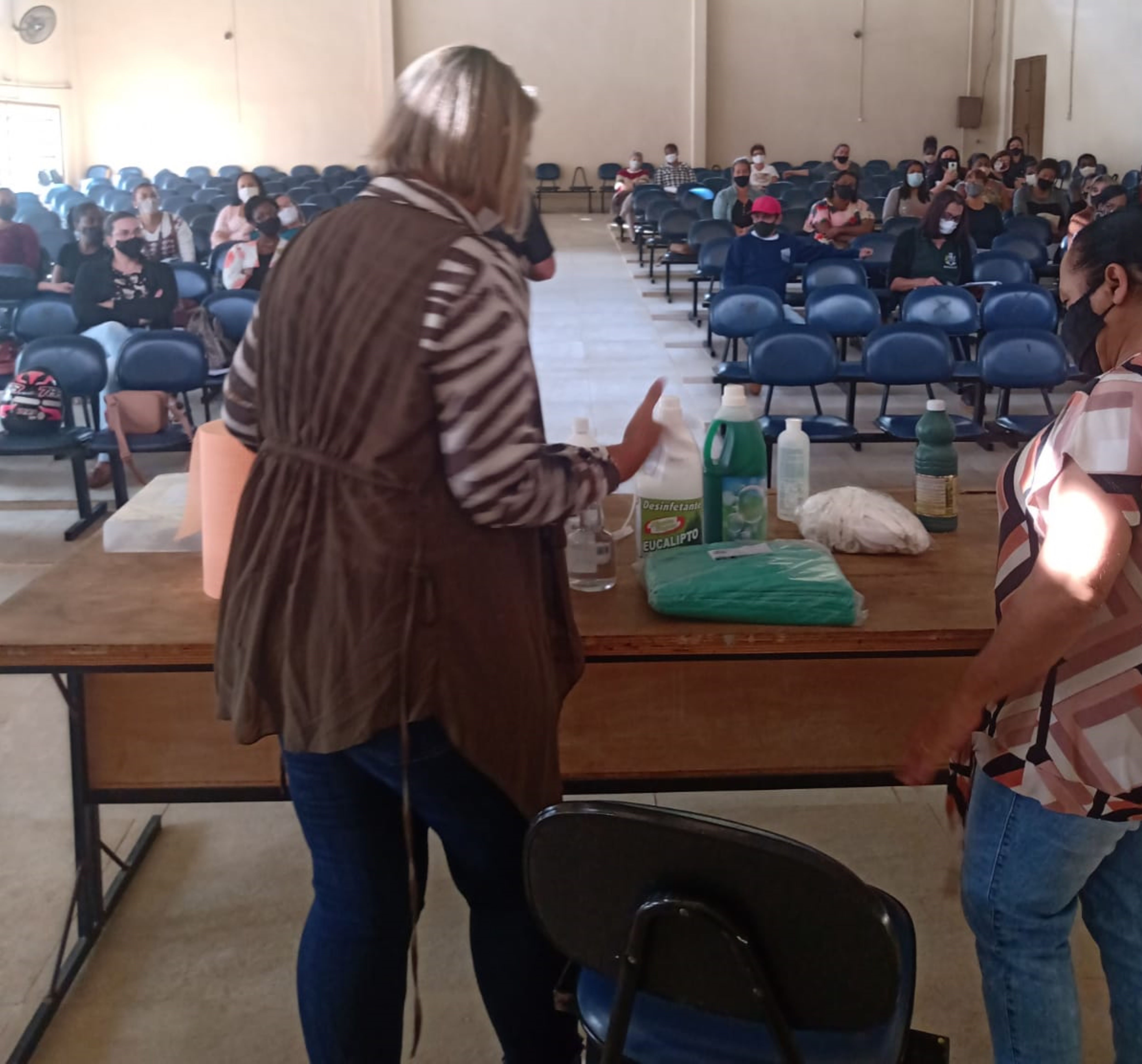 O Auditório Francisco Dornelles, no Macuco Rural Park, foi palco esta semana de uma palestra ministrada pelo coordenador da Vigilância Sanitária, Marcelo Juliano, que repassou às equipes de apoio das escolas orientações indispensáveis a serem seguidas quando as aulas forem reiniciadas. Dentre os temas abordados, destaque para as metodologias e técnicas de higienização, materiais utilizados e padronização de limpeza.