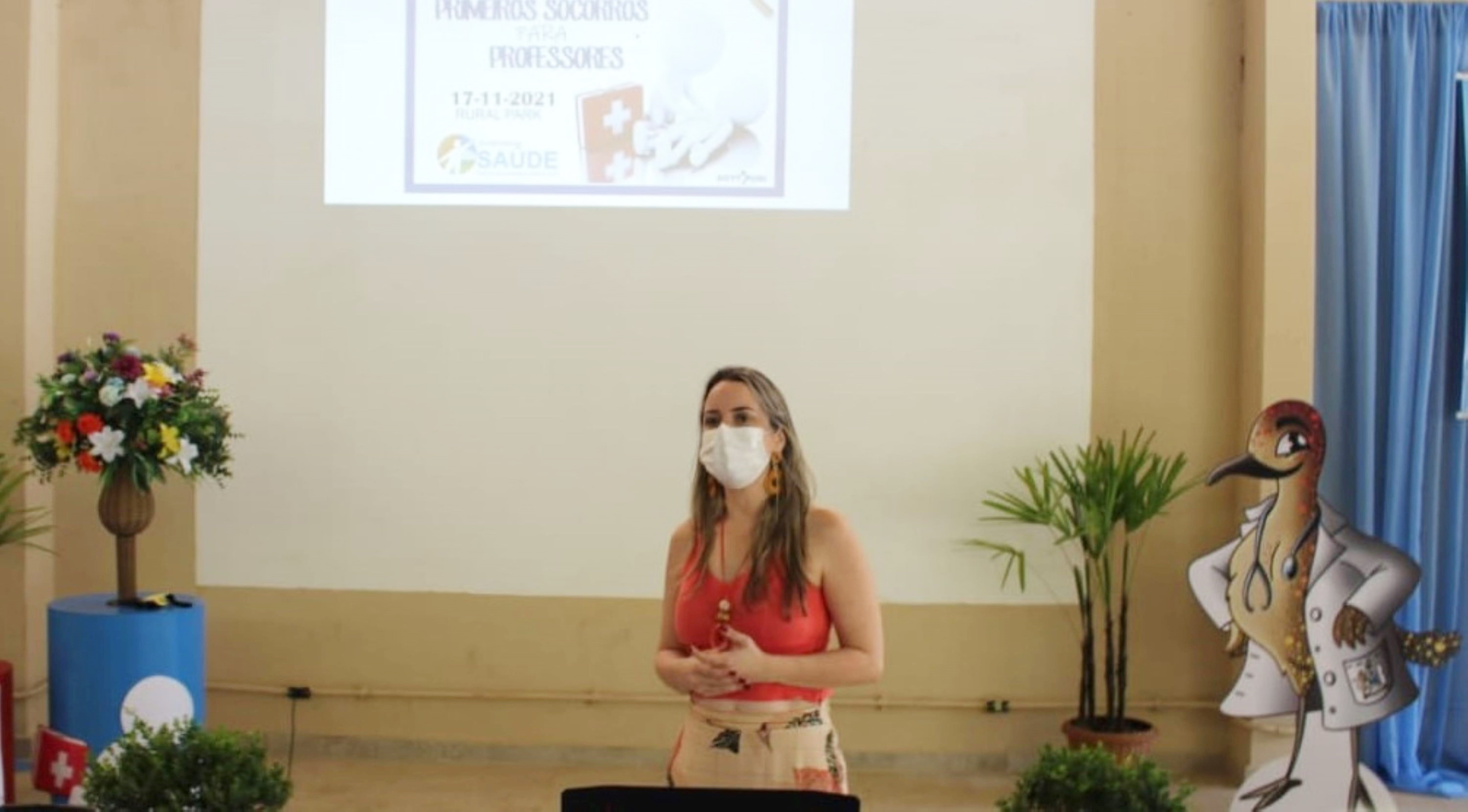 Enfatizando ensinamentos relacionados ao suporte básico de vida, uma palestra esclarecedora foi ministrada pela bombeira e enfermeira Eucileia Aguiar, que de forma didática repassou aos professores noções de ressuscitação cardiopulmonar, com lições teóricas e práticas, utilizando um manequim para treinamento de RCP.
