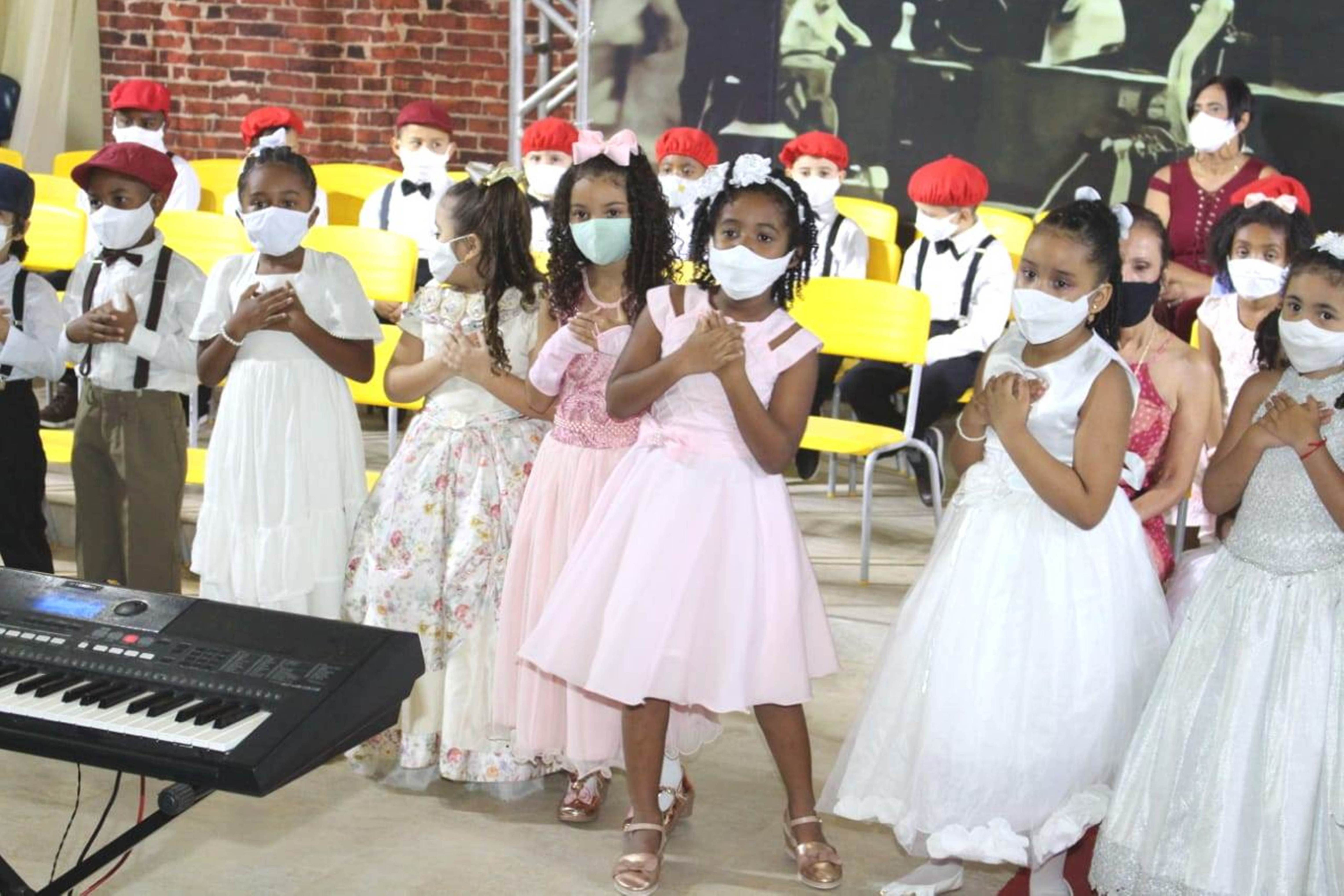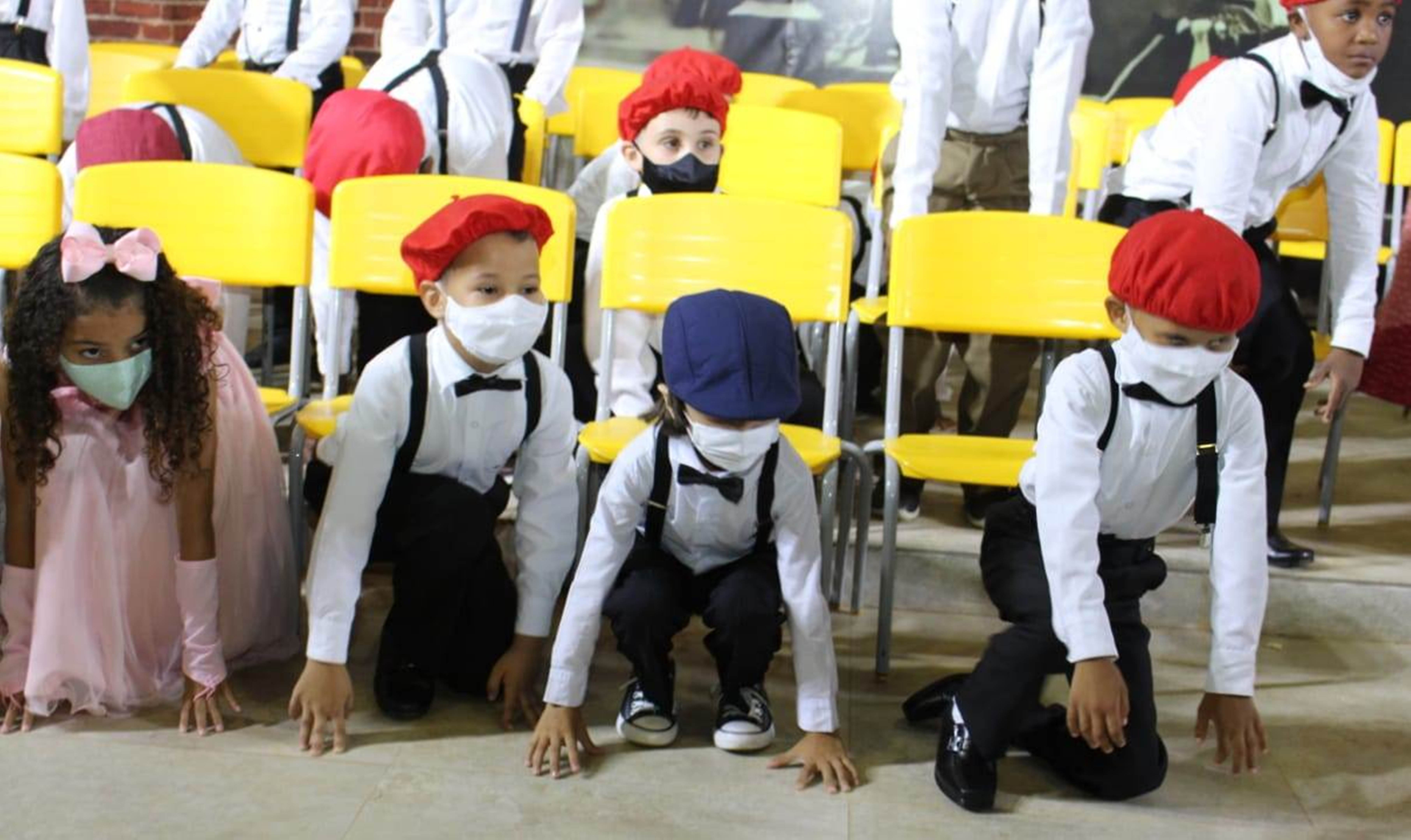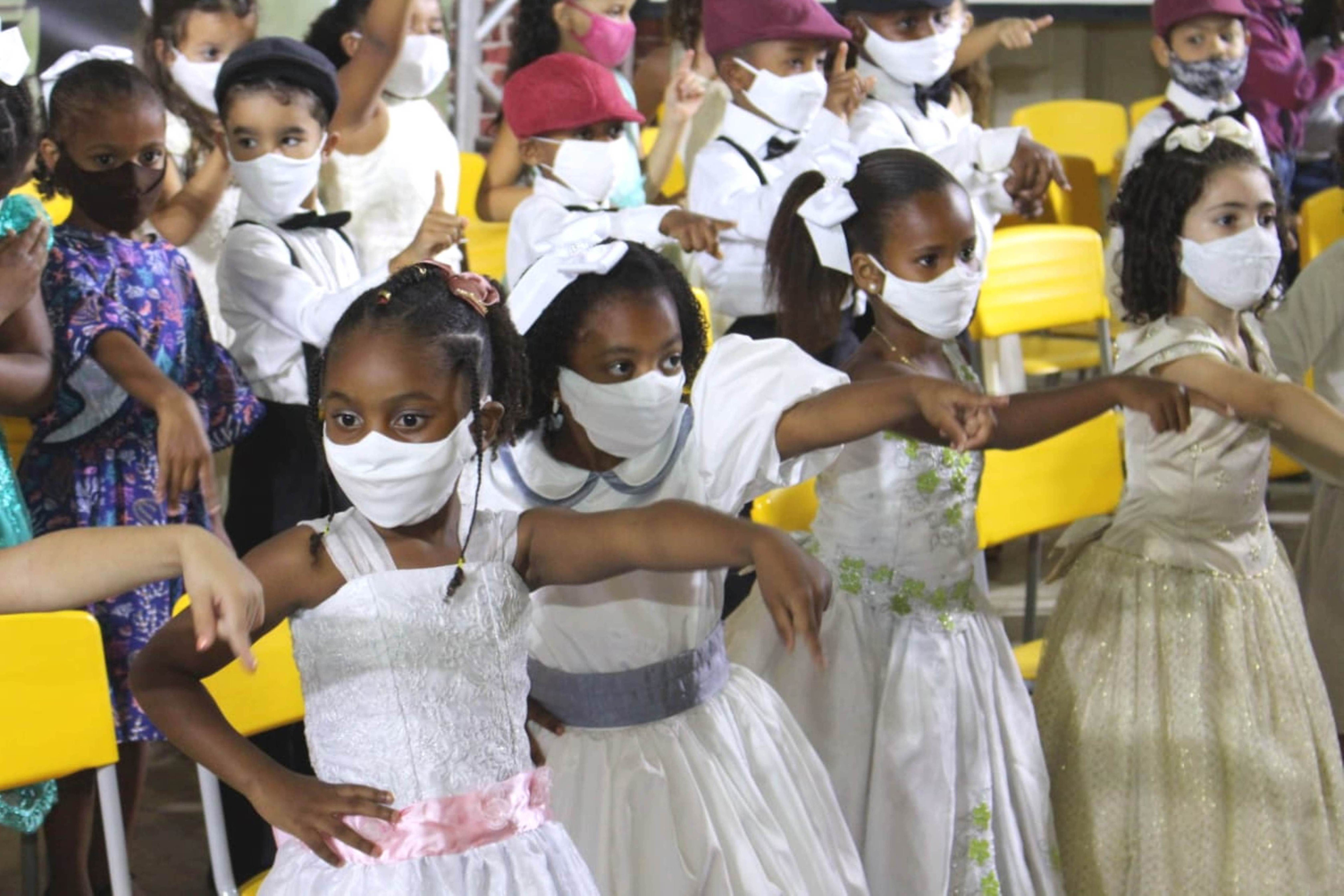 Em noite de emoção para os pequenos estudantes de três escolas municipais, a garotada se prepara para exibir mais uma coreografia