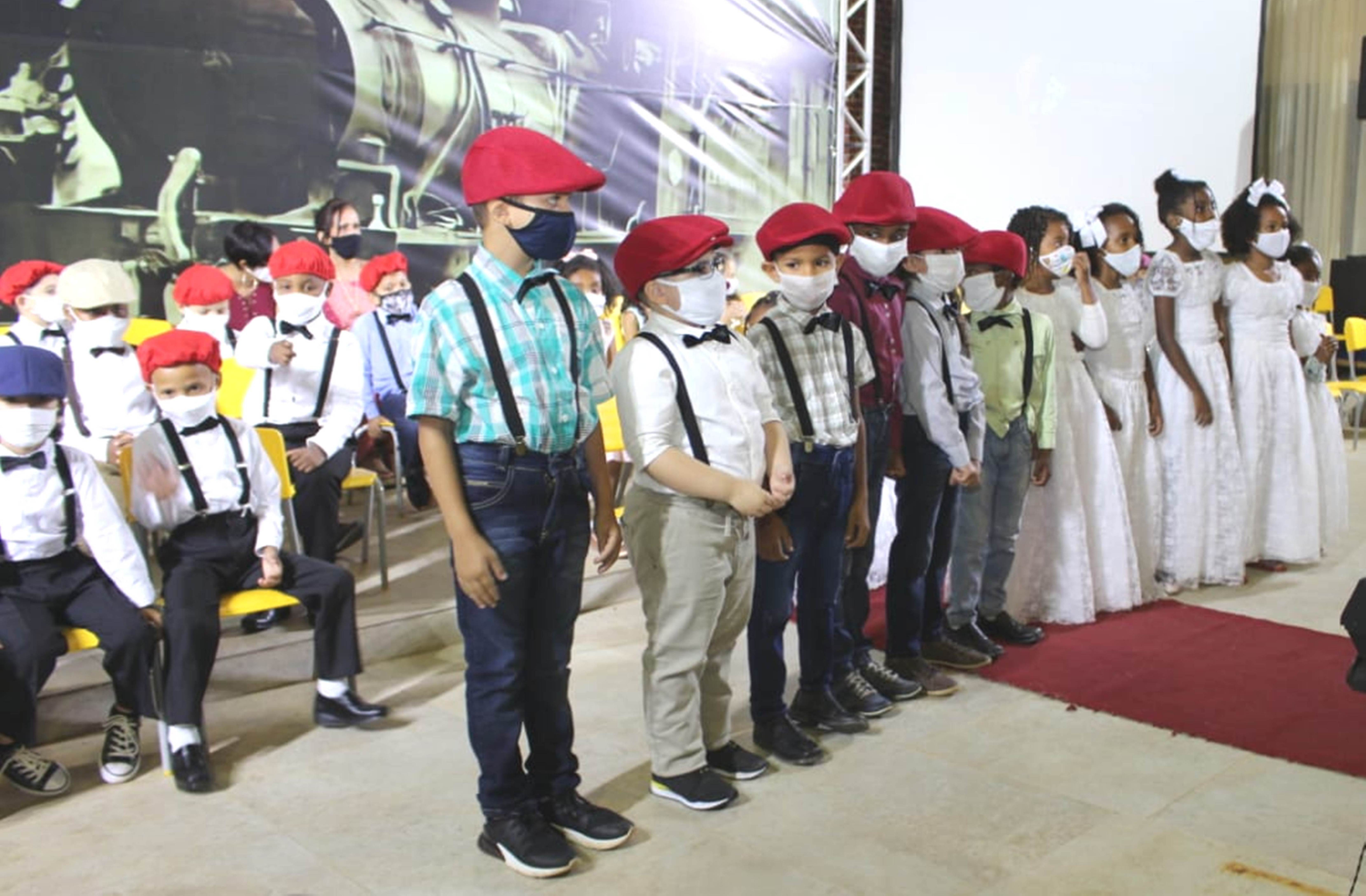 Com um cenário criativo, bem apropriado e de muito bom gosto, o Auditório do Macuco Rural Park se transformou numa extraordinária ‘locomotiva do tempo’, convidando alunos, pais e demais expectadores a embarcar na estação e viajar através da história do município. A proposta foi ‘transportar no tempo’ os pequenos formandos – trajados de ‘daminhas e cavalheirinhos’ de época – para que, conhecendo e valorizando o passado, projetem um futuro de sucesso com amor e respeito à terra em que nasceram.