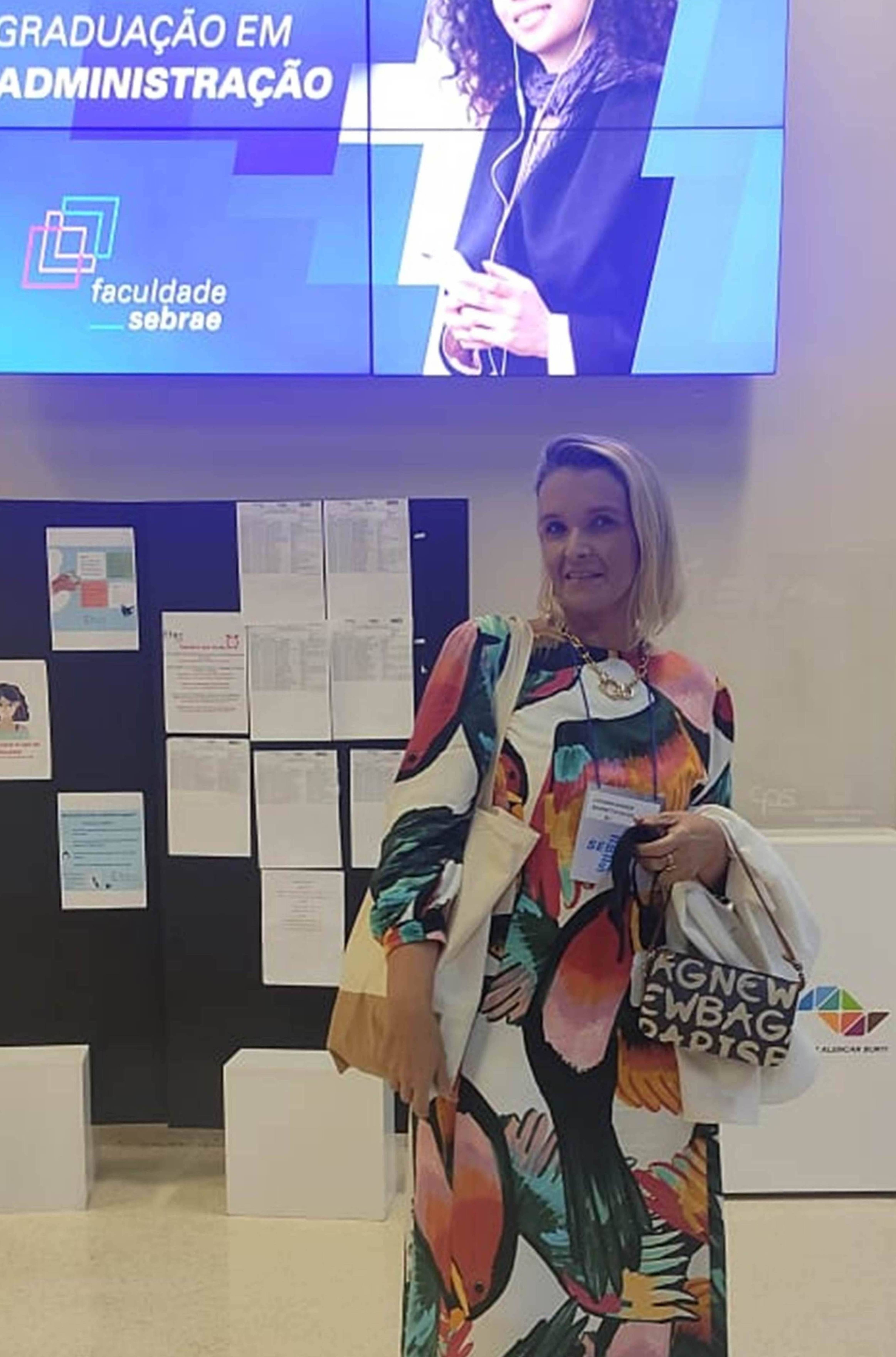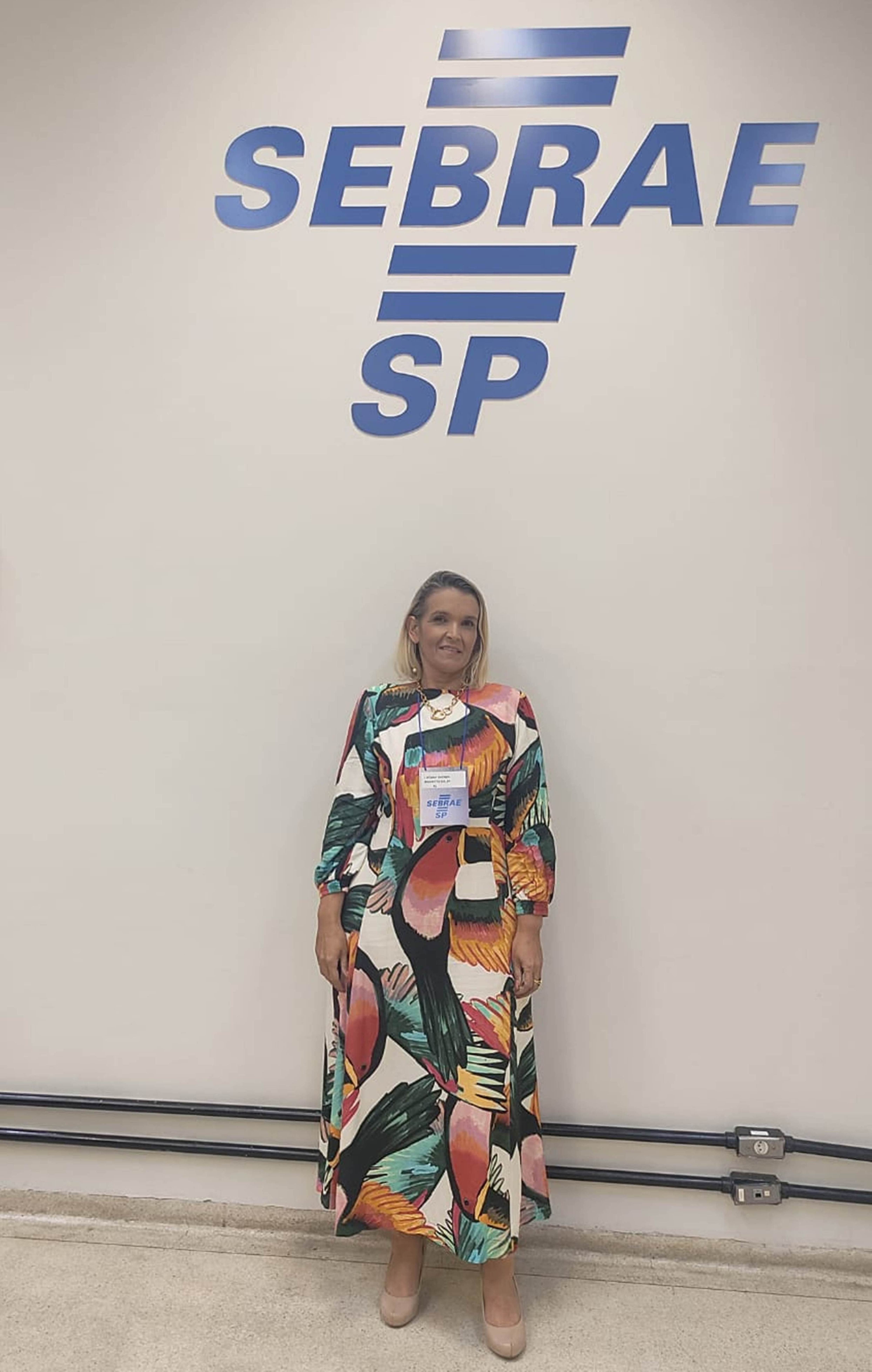 A secretária de Educação de Macuco no momento em que chegava à Escola Superior de Empreendedorismo do SEBRAE, em São Paulo