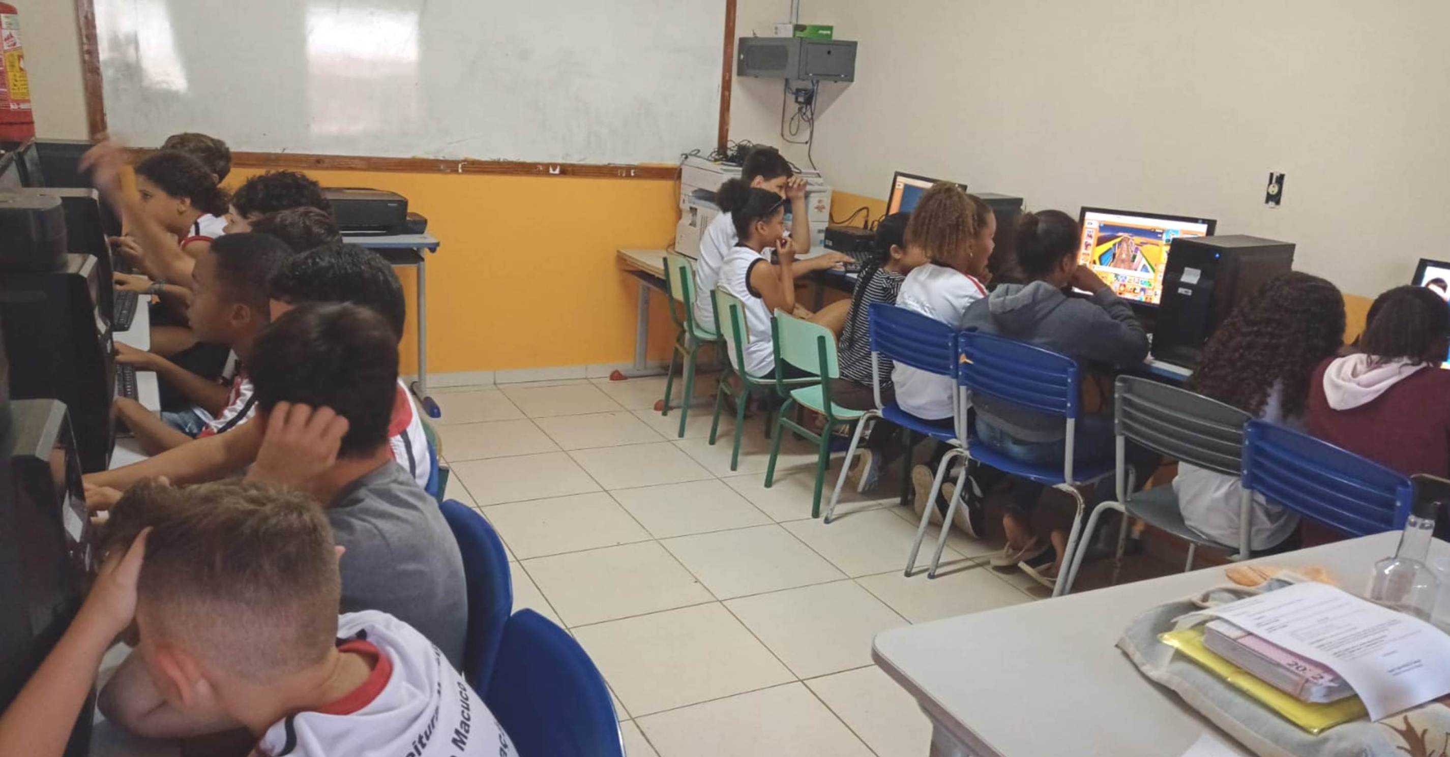 Conhecimentos sobre informática também estão entre os temas preferidos dos estudantes da Bath Rosas com a professora e instrutora Roseli Nepomuceno